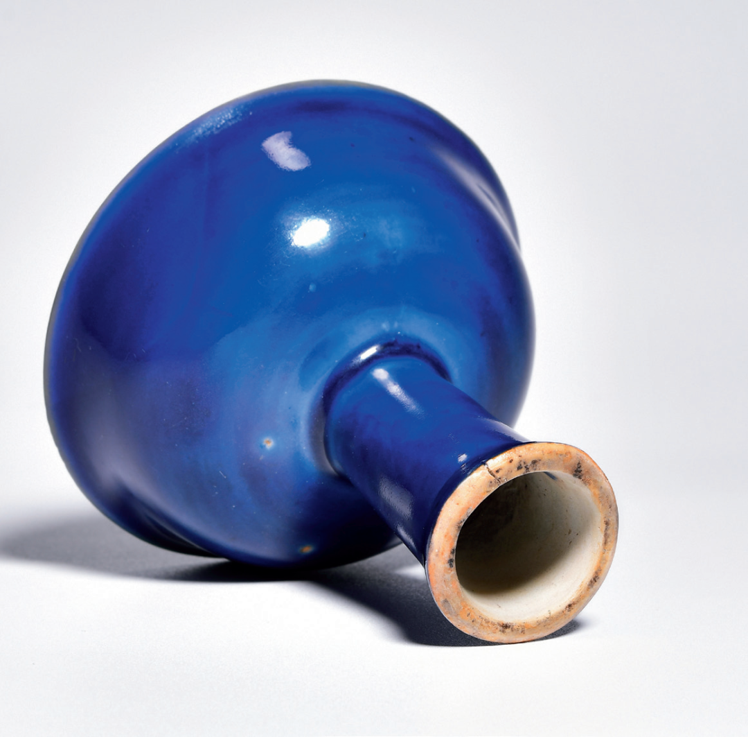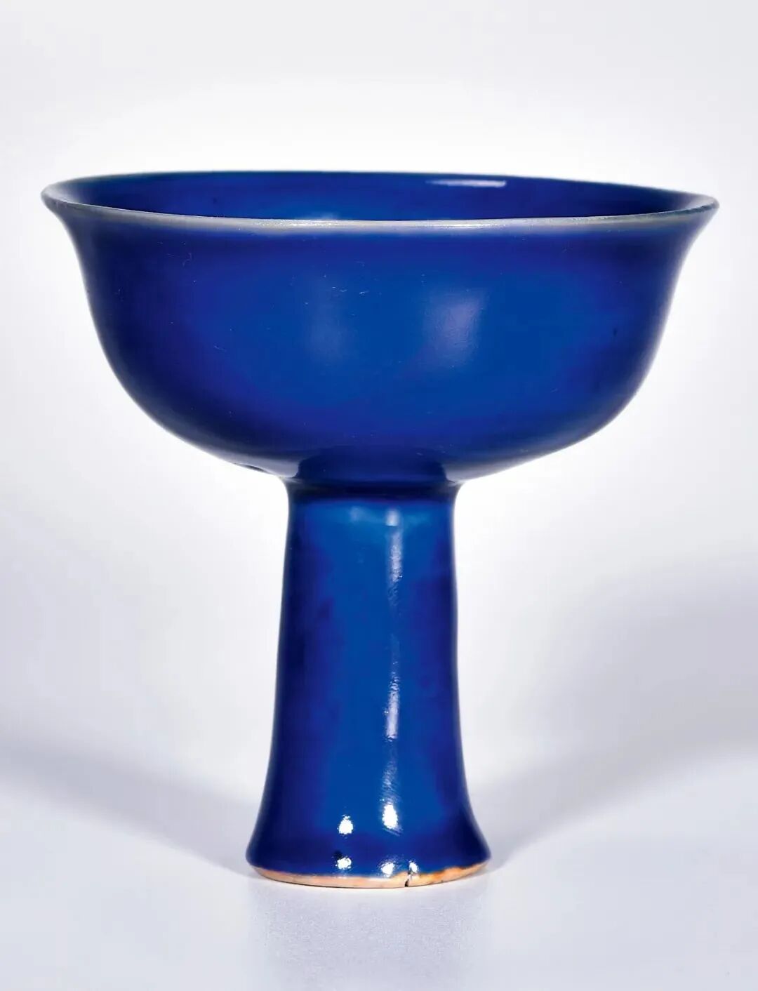 蒙元文化除尚白外,还尚蓝,在元代高质量的高温蓝釉创烧成功,史称“蒙古蓝”。后来这样的蓝之釉色在明代归入朝廷祭器之例,对应的是圜丘亦即祭天坛所用青色釉礼器。