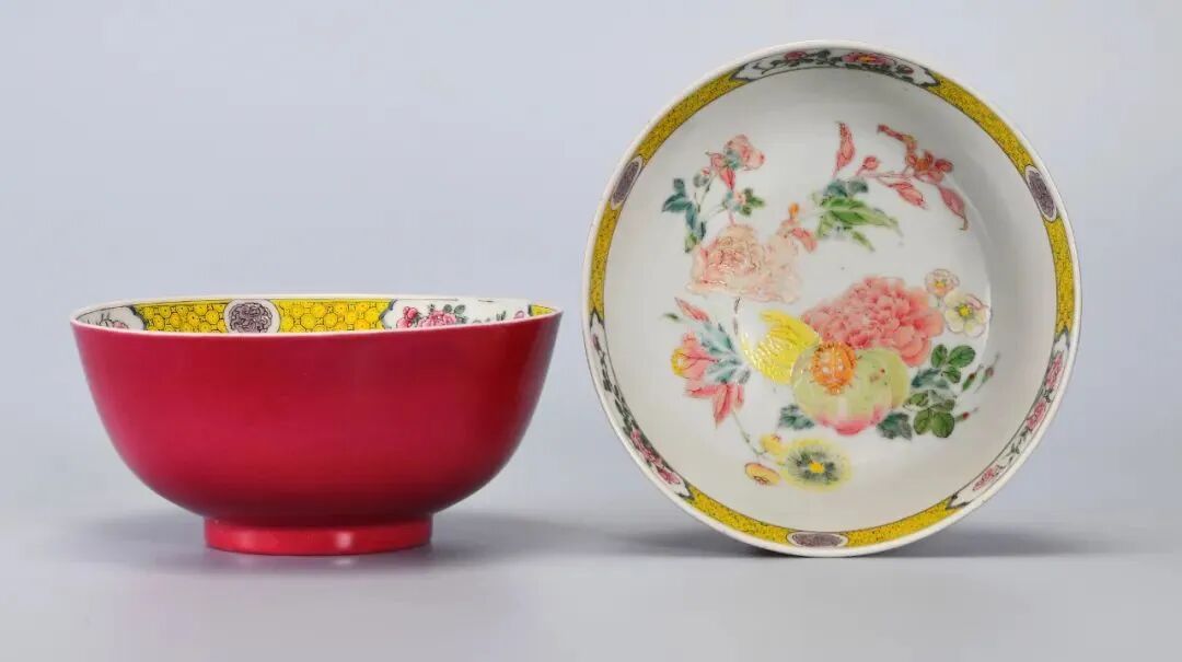 这些胭脂红艺术品既受中国文化“雅趣”的启发,亦受到诸多欧洲舶来珍品的影响。至雍正一朝,参考西洋配方加入“金”元素的胭脂红釉与刚创烧不久的其它粉彩彩料相搭配,制成富丽堂皇而又典雅秀丽的成熟之作。