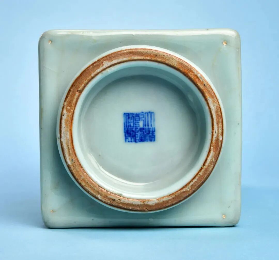 此间色釉创烧成功,身价不菲起始于康熙朝。如天蓝釉从天青釉演变而来,康熙时创烧成功,但康熙时均属小件文房用具,至雍正才见瓶罐等器型,本品便是一例。