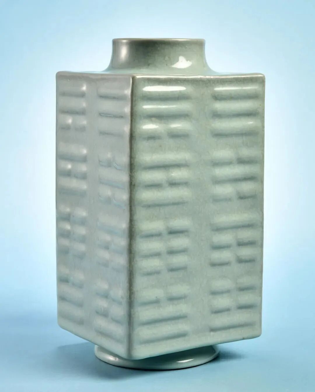 此种琮式瓶又可随明代称呼为“蓍草瓶”,明代文人常以此器插以蓍草,陈之几间。蓍草又是古人以周易之法进行占卜的工具,故青釉琮式瓶蕴含玄之又玄的天道法门,隐隐有神、人沟通之意。后此器演变不断,文人又喜作书斋里的清供雅物。
