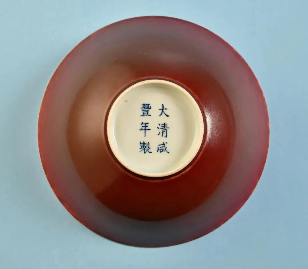 据《清档》记载,清咸丰一朝瓷器数量极其有限,故宫博物院所藏的此时瓷器与其它各朝相比亦相差悬殊。咸丰末年英法联军烧抢圆明园咸丰瓷器又遭厄运,多有流亡损毁,故现今存器因多加保护。这底部的“大清咸丰年制”六字楷书款极具时代意义。盛行乾隆、嘉庆、道光三朝的篆书款在此时大为减少,这咸丰朝重又兴起的楷书署款风气后来成为晚清官窑的标准,一直延续到宣统御窑厂终结。