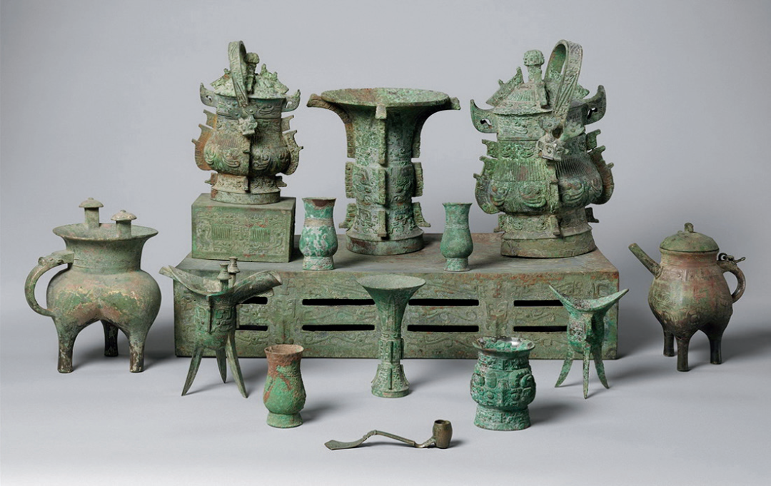 端方青铜器藏品中极著名的是这套1901年陕西凤翔府宝鸡县三十里斗鸡台出土的西周酒器