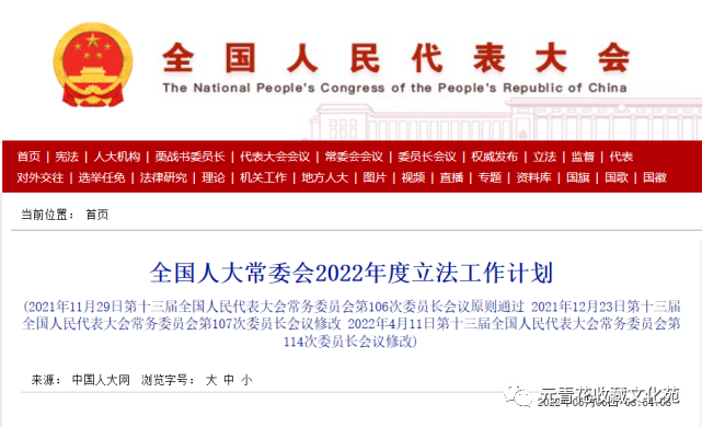 全国人大常委会公布2022年立法工作计划,其中提到《文物保护法》将进入初次审议名单中。
