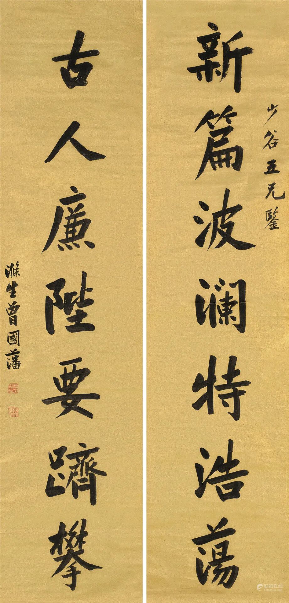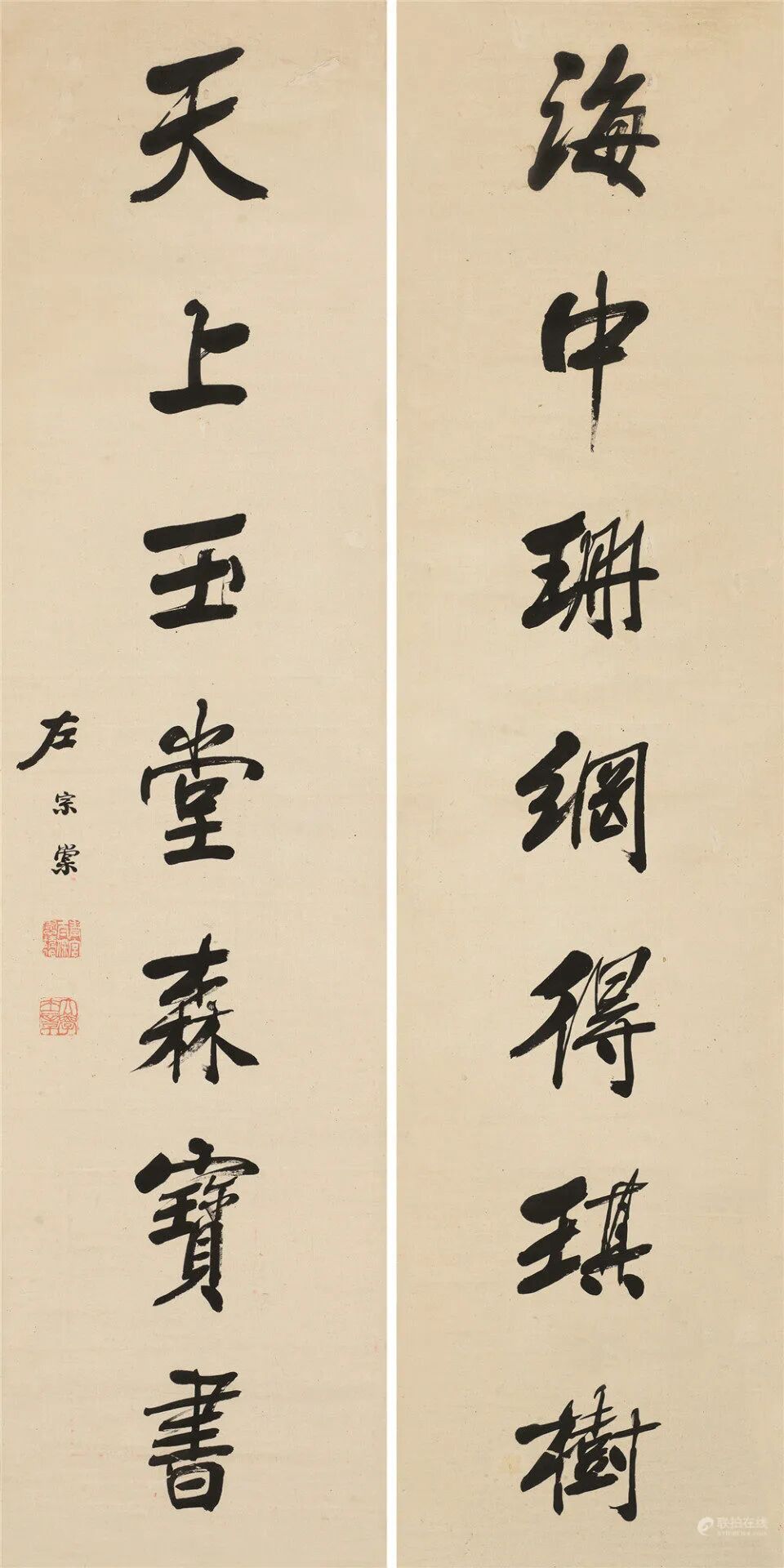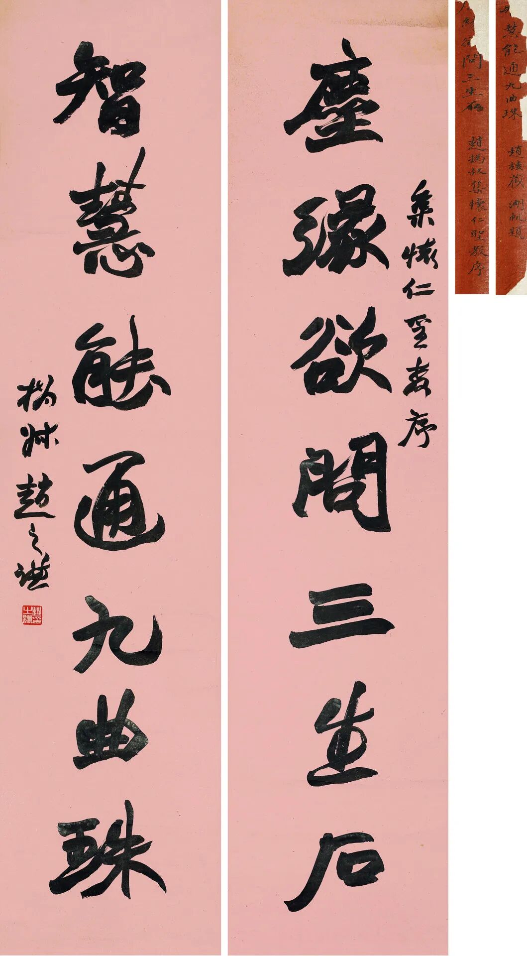 尺寸:130.5×30.5 cm(2),约3.6平尺(每幅)拍品估价:400,000 - 500,000 人民币款识:集怀仁圣教序。撝叔赵之谦。