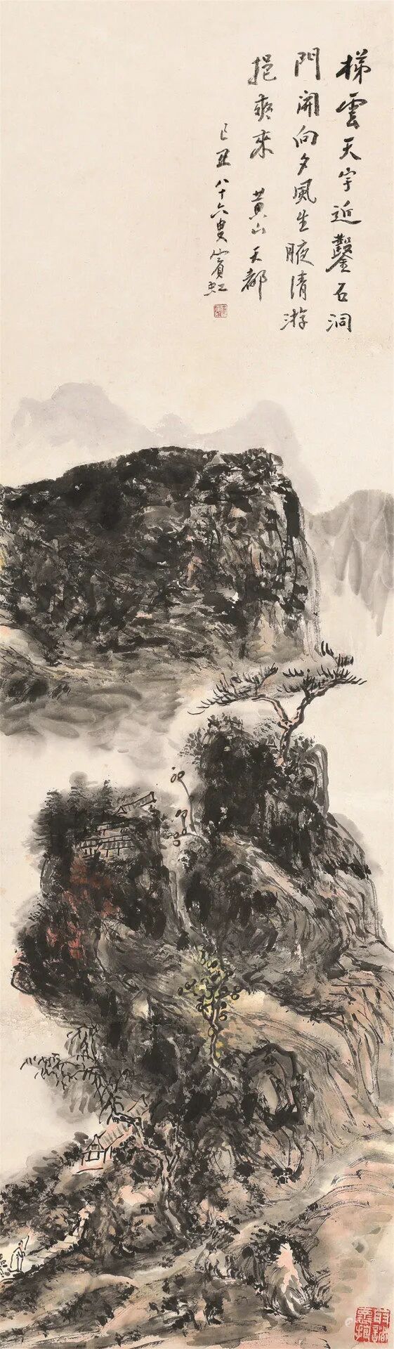拍品估价:5,000,000 - 6,000,000 人民币款识:浑厚华滋,画法正宗,苍润即是气韵,而枯硬于柔靡皆为失之。谦德先生雅正,癸巳宾虹年九十。1.《近现代中国书画精品集》p60,中国美术学院出版社,2003年。2.《南黄北齐:黄宾虹·齐白石书画选》P145,人民美术出版社,2010年。3.《明月清风》p57-58,上海世纪出版集团,2014年。4.《纪念黄宾虹诞辰一百五十周年·虹叟书画集》p374,浙江人民美术出版社,2014年。说明:上款“谦德先生”即严谦德。1917年生,安徽含山人,其父严宏桂曾任青岛工务局长、南京工务局长,为近代建筑大师,严谦德酷爱中国传统书画艺术,1944年毕业于国立艺专,师从黄宾虹、李超士等诸先生,擅山水、人物,严氏父子藏画众多,辟秋水轩以蓄之。此幅画面构思平中见奇,近取其质,远取其势,不落寻常蹊径,笔墨枯润相间,有虚有实,繁而不乱。前景三两棵古木,姿态奇绝,树干参差错落有致,点染几许“青绿”,似头早春之景;楼阁朱墙掩映其间,以蜿蜒崎岖的山径与中景相连,中景山峰挺劲,傲然耸立在画面正中;远山用笔浑融,以淡墨晕染,使山有骨架,有血肉,呈现出一片寥廓氤氲之态。山石阳面以赭石、青绿写出,与古人所说的“墨不碍色,色不掩墨”相通,色与墨相得益彰,浑然一体。题款“浑厚华滋,画法正宗,苍润即是气韵,而枯硬与柔靡皆为失之。”一句可谓是道尽了黄宾虹艺术追求,先生从50多岁论画拈出此语,一直到晚年仍奉行不殆,其几十年艺术道路在不断丰富此一概念。而所赠之人为徒严谦德,时在巢县中学任职美术教师,所题数语显然是欲以此作作为范本示人之意。在文人画发展史上,绘画从来就不是一种满足人们视觉享受的空间艺术,而是心灵修养的进阶,一片山水就是一片心灵的境界。黄宾虹以“浑厚华滋”为文人画之旗帜,追溯文人画发展之正脉,并从中抽绎出民族精神之内涵,以雄厚苍润拯救流于荒怪萎弱的绘画传统,以浑全阔大去振刷清末以来萎靡的民族精神。拍品估价:800,000 - 1,000,000 人民币款识:梯云天宇近,凿石洞门开。向夕风生腋,清游挹爽来。黄山天都。己丑,八十六叟宾虹。出版:《黄宾虹书画选》图108,西泠印社出版社,2005年拍品估价:3,000,000 - 4,500,000 人民币款识:
