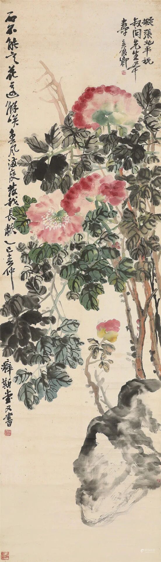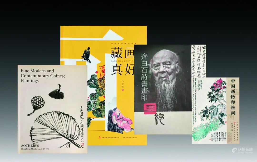 1.《中外》(泰文版119期)第19页,1970年12月2.《不辞遍唱阳春·京剧须生李金棠生命纪实》第136页,(宜兰)台湾传统艺术中心,2014年10月1.《大人·第十二期》第4页,(香港)大人出版社有限公司,1971年4月2.《张大千先生纪念册》第229页,(台北)故宫博物院,1983年7月3.《张大千诗文集》第165页,(台北)乐恕人编,1984年4月4.《张大千年谱》第398页,四川省社会科学院出版社,1987年12月5.《张大千传奇》第236页,(台北)圣文书局股份有限公司,1989年12月6.《张大千诗文集编年》第367至368页,荣宝斋,1990年10月7.《张大千先生诗文集·下》第148至149页,(台北)故宫博物院,1993年6月8.《张大千全传·下》第487至488页,花城出版社,1998年4月9.《故宫文物月刊·第二百六十二期》第127页,(台北)故宫博物院,2005年1月10.《张大千传》第421页,百花文艺出版社,2008年1月说明:上款人“金棠仁兄”即李金棠,北京人,一九二一年生,幼受家庭喜好戏曲熏陶,入中华戏曲专科学校,专攻老生,毕业后,在平沪宁等地演出,崭露头角。一九四八年,随顾正秋团赴台湾演出,因政局变易,遂留居当地。拍品估价:2,800,000 - 3,500,000 人民币款识:己丑四月写似履川吾兄雅属并正。弟稚柳调啸阁用北苑灋。来源:香港苏富比,1992年春季拍卖会,编号164展览:“艺苑撷英·谢稚柳·陈佩秋艺术用印及作品文献展”,2019年8月10至2019年9月22日,海上印社艺术中心。1.《名家翰墨》第四十四期,谢稚柳特集(香港,翰墨轩,一九九三年九月),页242.《艺苑撷英·谢稚柳·陈佩秋艺术用印及作品文献展》,海上印社2019年。说明:上款人“履川”即曾克端(1900—1975),福建闽侯人,出自鹗里曾氏世家,自明迄清,科名甚盛,诗文别集传世极伙。他承传家学,早岁赴京受业于桐城派大学者吴北江门下,受经史以及诸子之学,复习诗。后往沪上师从陈散原。并与潘伯鹰、谢稚柳、沈尹默、张大千等交友笃甚,相互常有作品相赠。他擅诗,工书法,居香江后,历任各大专院校教席,亦曾赴英作巡回书画展。有专集《颂橘庐诗存》和《颂橘庐文存》问世。拍品估价:1,200,000 - 1,600,000 人民币款识:回黄转绿意匆忙,饫眼娇红雨一场。不为春归悔轻别,秋丛倚杖赏严霜。辛酉夏日,壮暮翁稚柳并书旧句,时年七十有三矣。钤印:谢稚柳(白)、壮暮(朱)、壮暮翁(白)、好好(朱)1.《近代中国画名家·谢稚柳》,上海书画出版社,2006年。2.《海派百年代表画家系列作品集·谢稚柳》P156,上海书画出版社,2013年。3.《迟燕高华、谢稚柳、陈佩秋书画集》图33,上海书画出版社,2013年。4.《谢稚柳画集》P115,福建美术出版社,2014年。拍品估价:2,500,000 - 3,500,000 人民币款识:无量寿佛。绍珊仁兄清供。丙寅春二月,同在京华。齐璜恭绘。
