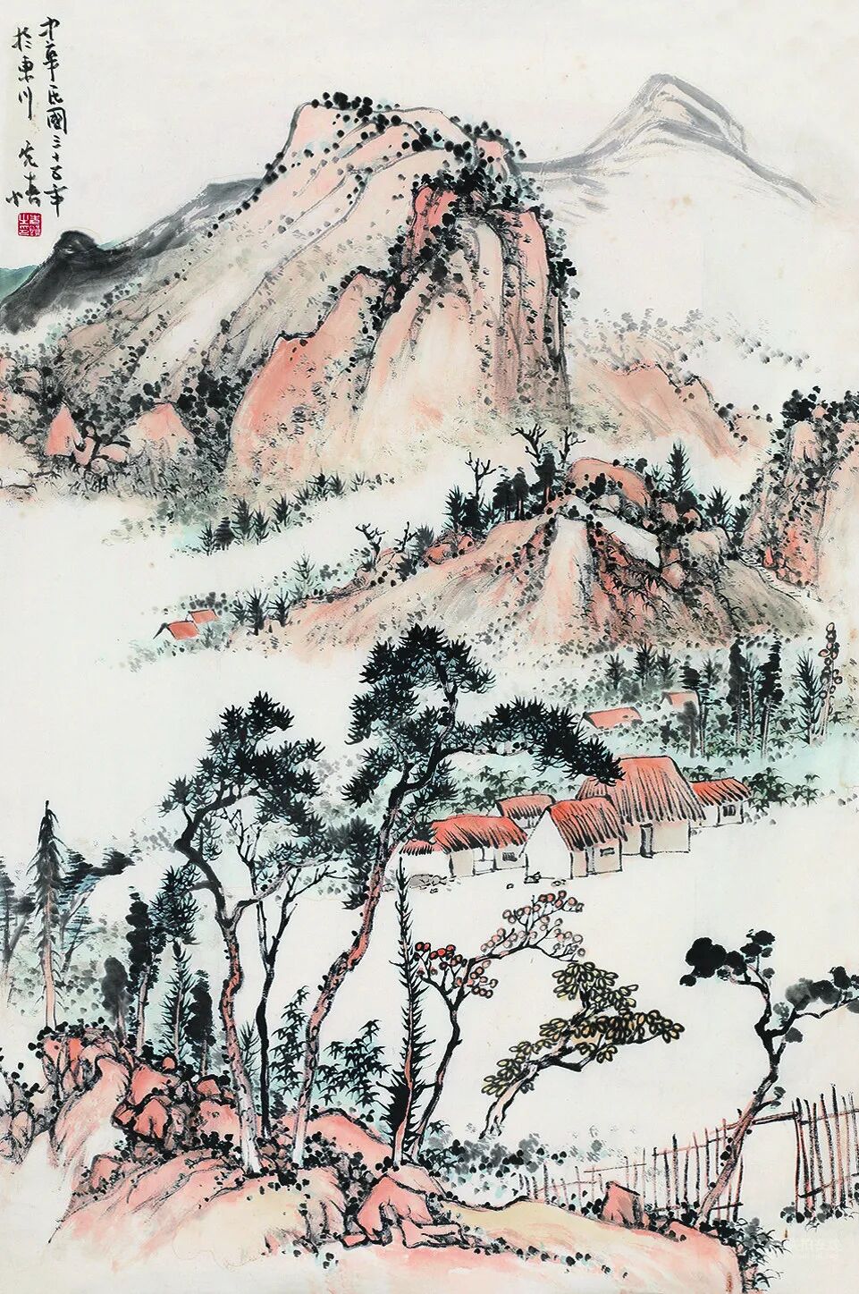 钤印:蜀郡张爰(白)、两到黄山绝顶人(朱)、大千无恙(白)、大千毫发(白)、大风堂(朱)