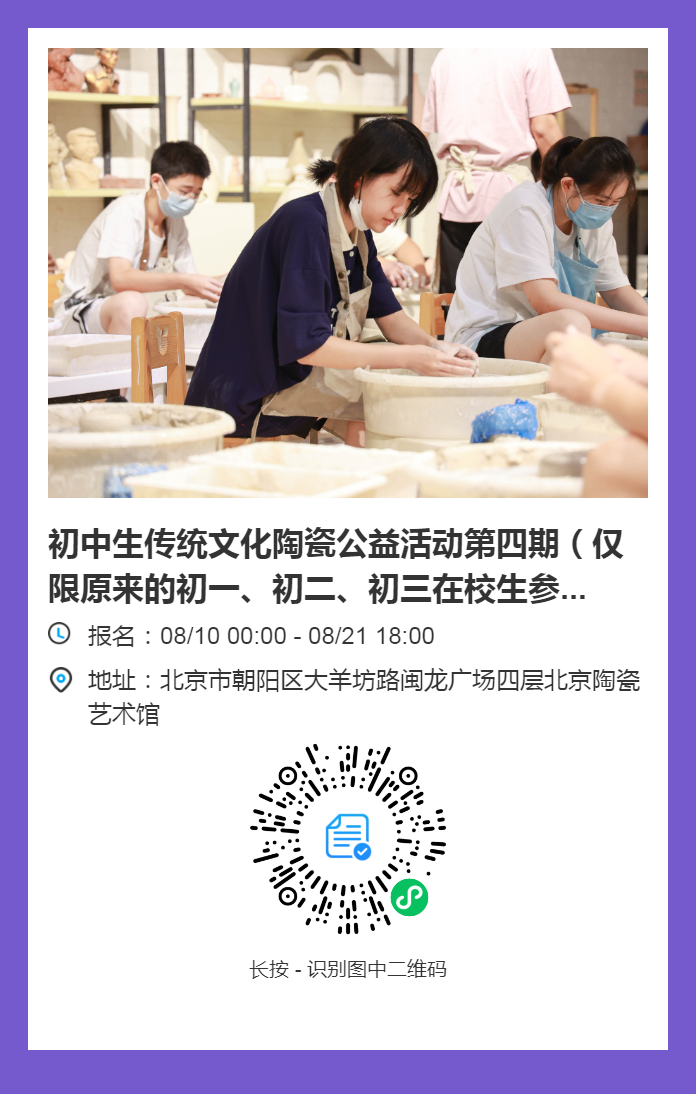 好消息!北京市自动化工程学校(全国中小学生研学实践教育营地)与北京陶瓷艺术馆(全国中小学生研学实践教育基地)针对北京市在校初中生推出的营地研学活动第二期圆满结束,第二期活动于8月6日、8月7日、8月13日、8月14日四天举行,共有数百名学生参与本次活动。