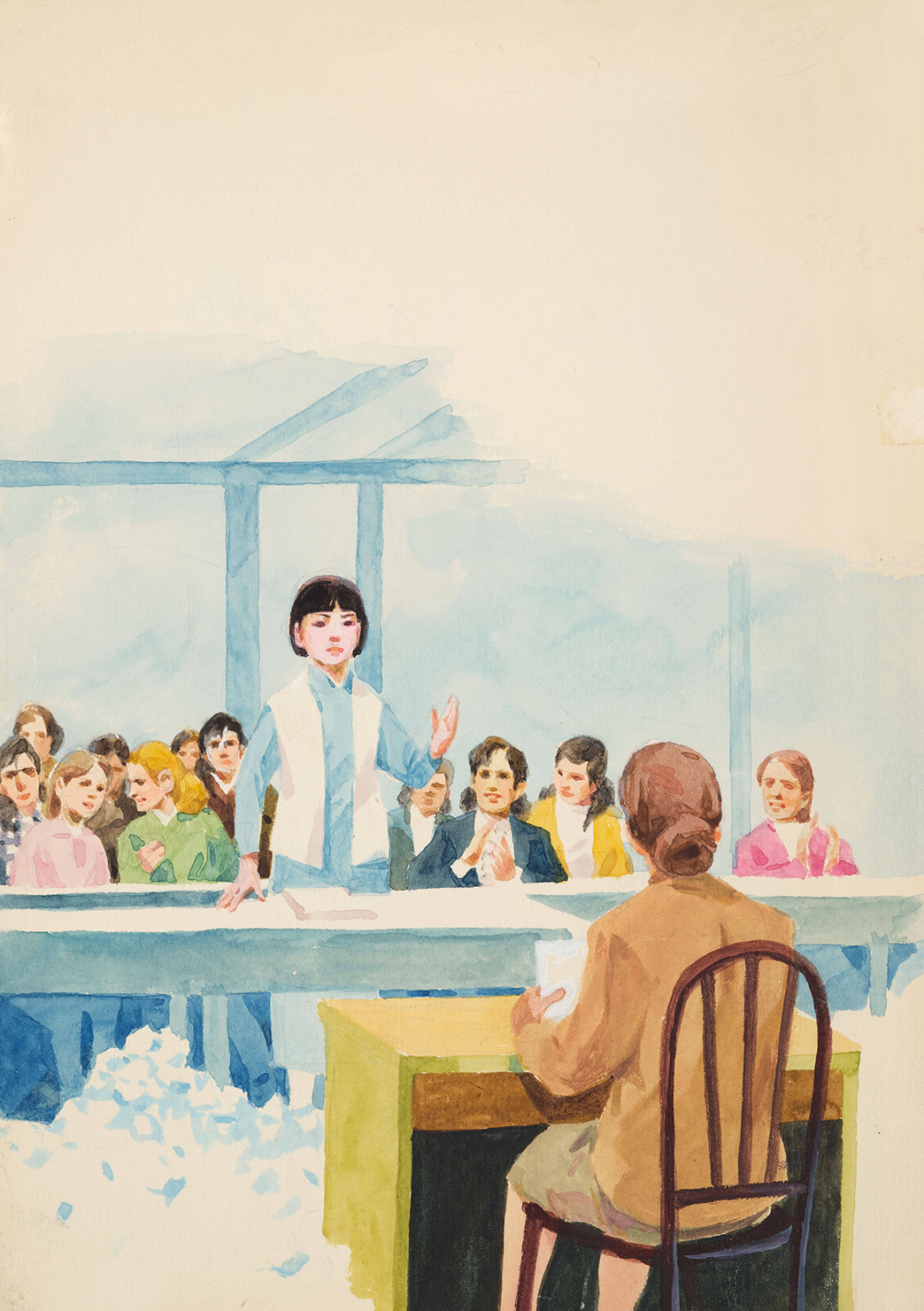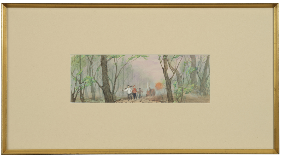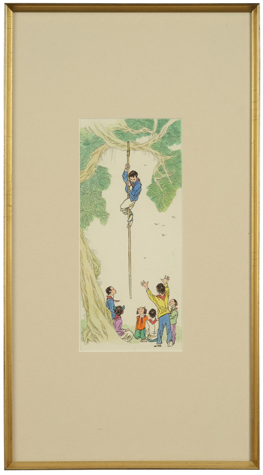 乔羽先生作词的《让我们荡起双桨》承载了80后、90后的童年记忆,北海公园的白塔也成为了众多北京中小学生们春游、秋游的打卡目的地。王惟震正是这幅深入人心的教材插图创作者。在70年代参加中国美展的王惟震是人教社的老作者,“少年闰土”“李雷”“韩梅梅”这些经典形象都出自他的笔下。Lot14557
