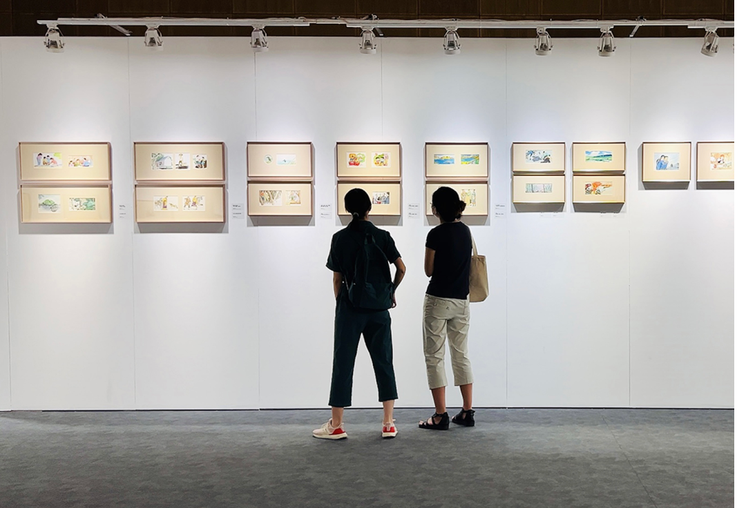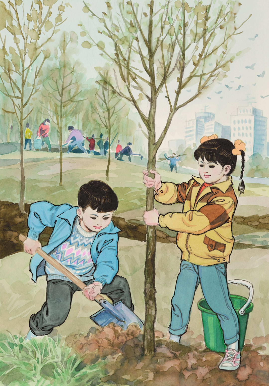 2022年8月7日至8月13日,在嘉德艺术中心B1层展出的“我们的黄金时代”展览第三单元“珍贵的教科书——老版教材插图原作”带大家重温80后、90后共同记忆中的经典图像,引起了观众的集体回忆。该展区展出了人教出版的第九套(全国首套义务教育)小学语文教材中90幅插图的原作。这套教材横跨整个九十年代,自1992年开始编写,1993年供全国使用,遍及28个省、自治区、直辖市,沿用至2001年, 前后使用时间长达十余年,推算一下发行量应该过亿。因为“跨世纪”而备受瞩目,人教社第九套教材是新中国成立后第一套九年义务教育教科书,也是建国以来反响最好的一套教材。该套英文教材中的经典人物插图“李雷”和“韩梅梅”更成为了一个时代的标识,令人怀念。教科书插图成为植入一代人心中的经典图像,铺陈着时代,唤醒一代人的童年记忆。但插图作者往往鲜为人知。他们的姓名被记录在课本的封底,默默无闻地陪伴着孩童长大。我们应该知道,它的作者是王惟震,还有马振祥、于绍文、姜吉维等艺术家,他们以专业的绘画功底,细腻地体察孩子们的内心世界,通过“让我们荡起双桨”、“小摄影师”等图画启蒙审美,种下一颗颗领悟美的种子。←按住图片向左右滑动查看更多→