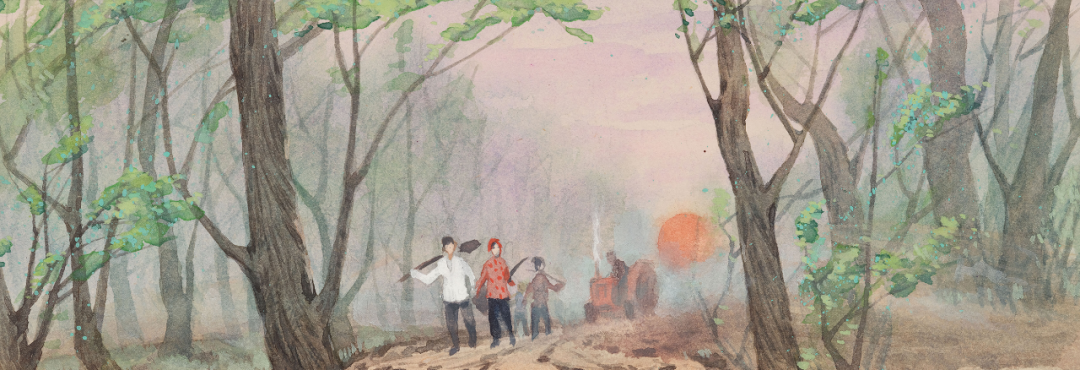 马振祥善用中国画工笔重彩,其质朴的笔触与诗歌的意境高度统一,用色清新、明快。