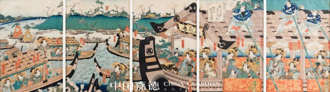 本次“浮生过眼梦春秋——日本经典浮世绘专场”,云集众位浮世绘巨匠,包括并称“浮世绘三杰“的葛饰北斋、歌川广重、喜多川歌麿,明治时期年代久远的原版浮世绘,以及歌川派尤负盛名的诸位“明星”画师等等。专场中的36幅浮世绘精品题材丰富,生动鲜明。欣长柔媚的纤纤美人,含蓄纯粹的自然风光,热闹意趣的市井生活,为广大藏家带来不一样的东瀛风情。浮生过眼梦春秋——日本经典浮世绘专场