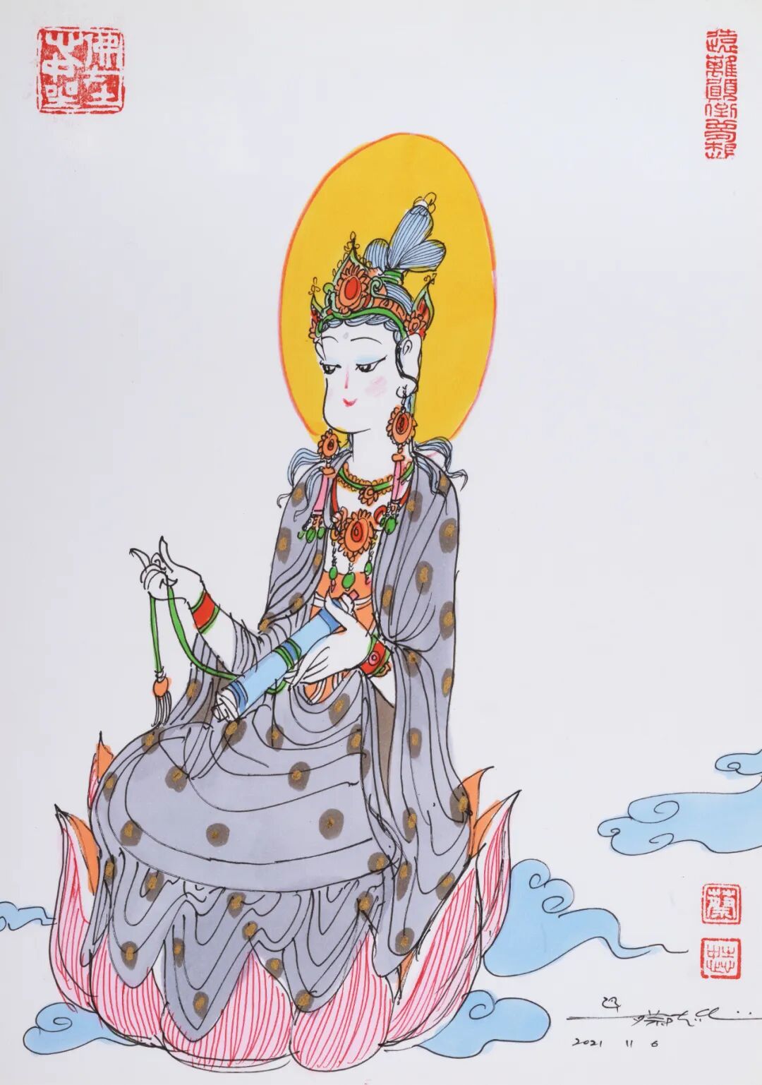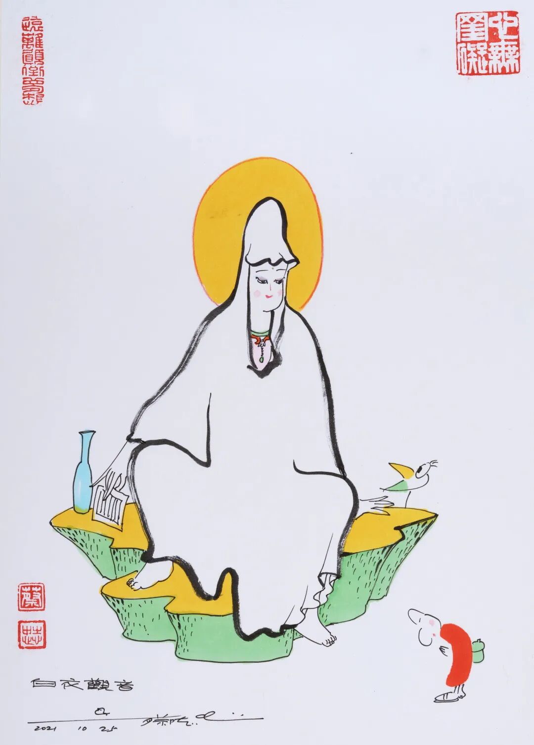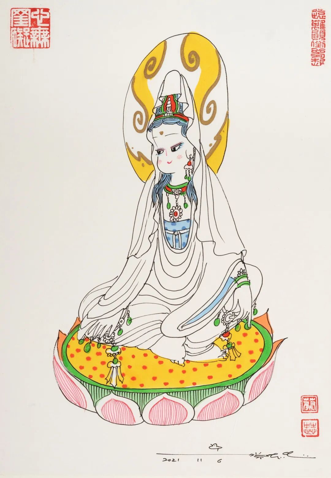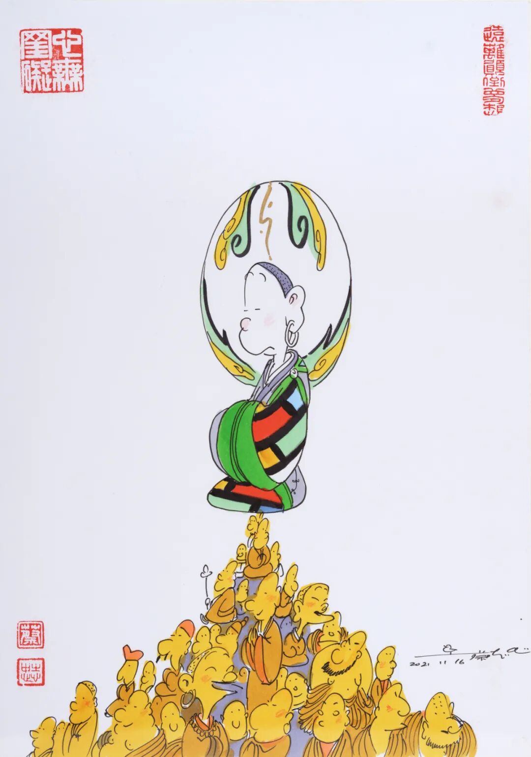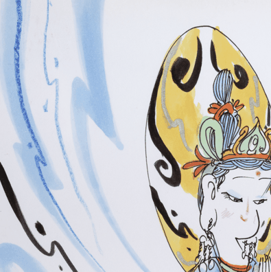 “蔡志忠绘画作品专场”汇集精彩作品36幅,内容涵盖佛陀、菩萨、罗汉等题材。以漫画的形式,深入浅出地为中国优秀传统经典做适切的诠释。透过漫画理解古代经典,解读深厚的中华文化和智慧。