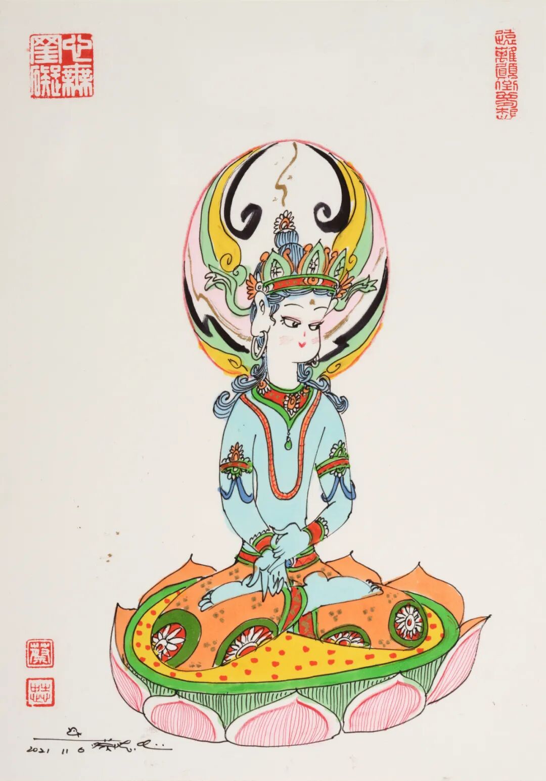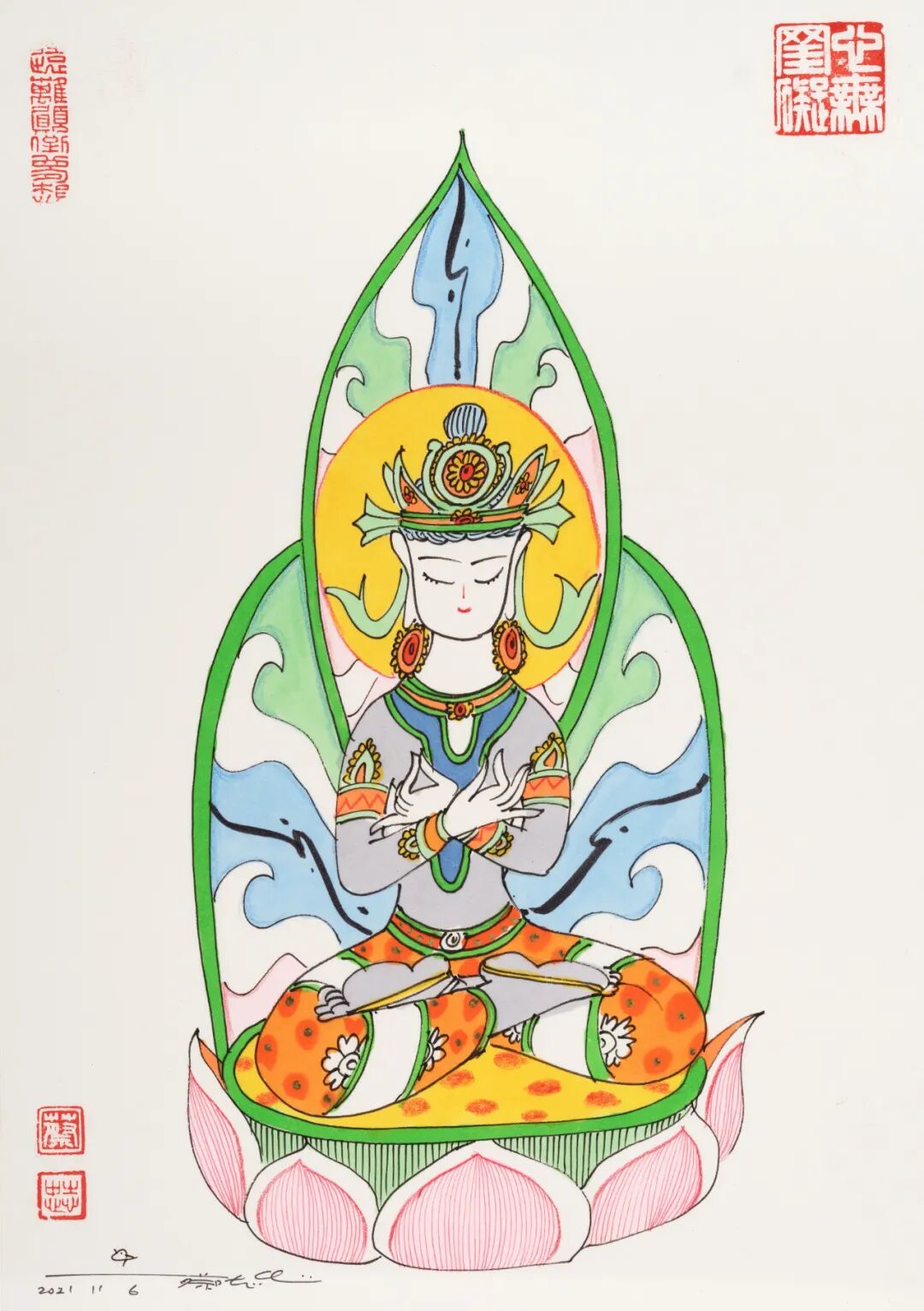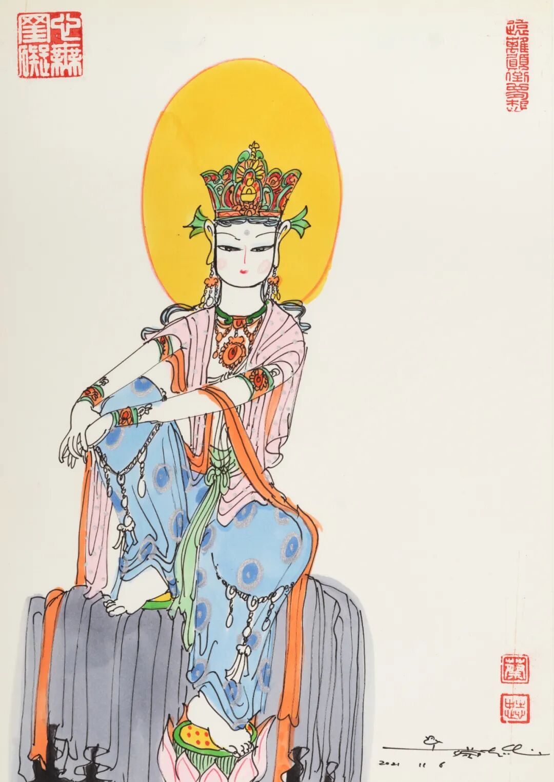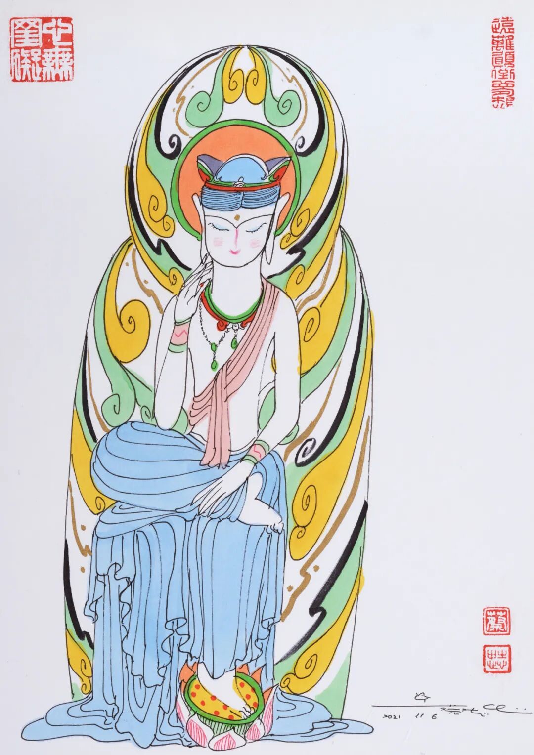 “蔡志忠绘画作品专场”汇集精彩作品36幅,内容涵盖佛陀、菩萨、罗汉等题材。以漫画的形式,深入浅出地为中国优秀传统经典做适切的诠释。透过漫画理解古代经典,解读深厚的中华文化和智慧。