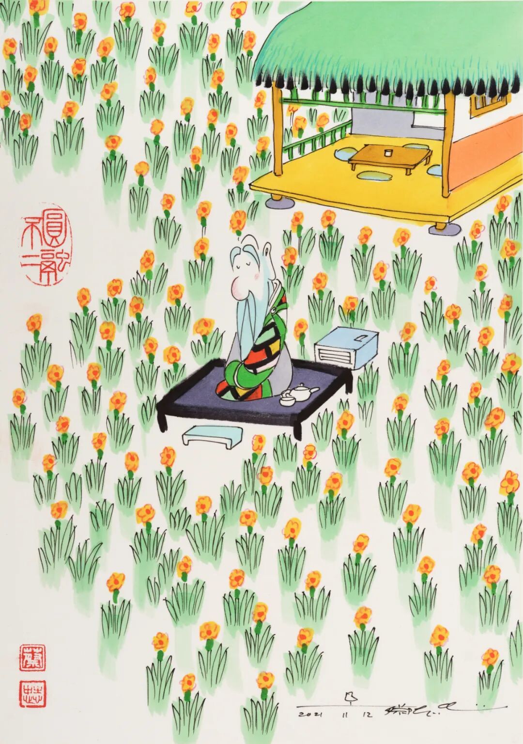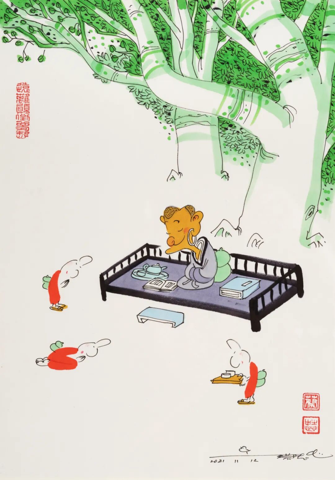 蔡志忠创作时喜欢把自己想象成作品里的主人公。画《庄子》时,蔡志忠觉得自己就是庄子;画《老子》时,他觉得自己就是老子。或许蔡志忠也将自己想象成一个传道者,用画笔传承东方文化。Lot 11126