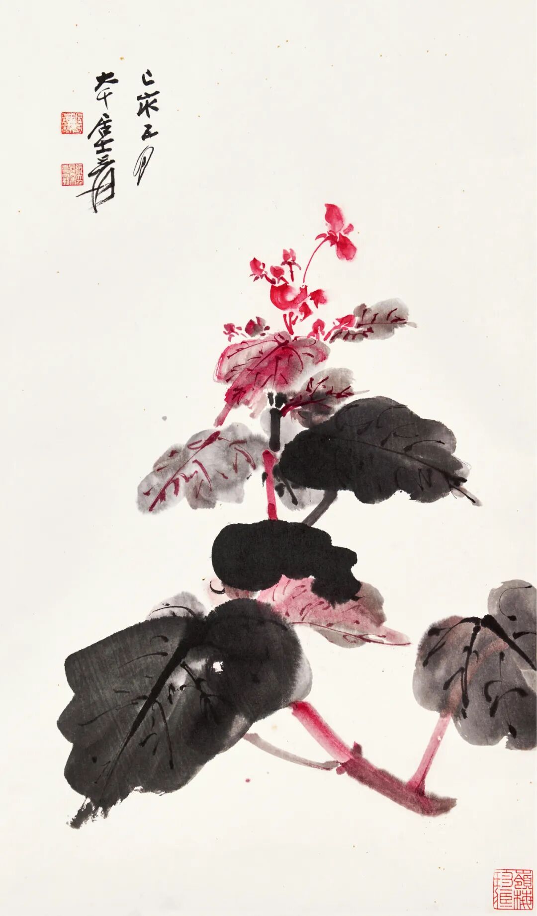 张大千 秋海棠2022年春Lot1528,成交价:RMB 1,495,0001958年,张大千所作《秋海棠》在巴黎展出,荣获纽约“国际艺术学会”金奖,并被选为世界大画家。本幅《秋海棠》作于1959年,画面写一株折枝海棠,亭亭玉立,娇花昂首,高踞枝梢,嫰红绽放,墨叶护持于下,朱墨映照,一片秋色入眼。本作为张大千画没骨花卉示范选作,自二十世纪六十年代以来参与多次重要的出版与展览,原为张大千好友高岭梅伉俪的“梅云堂”旧藏。清代赵学敏编撰《本草纲目拾遗》中说:“相传昔人以思而喷血阶下,遂生此,故亦名相思草。”此传说应是源自于宋元时代无名氏所著,颇具玄幻色彩的《采兰杂志》,书中说:古时有一妇人,因怀念心上人,常面墙而泣。后来洒泪之处竟然长出了一棵草,花妩媚动人,花色又极像那妇人的脸。秋海棠在中国古代有“八月春”、“相思草”的称谓,说此花既有相思怀春又有表达离愁别绪的意味。![]()