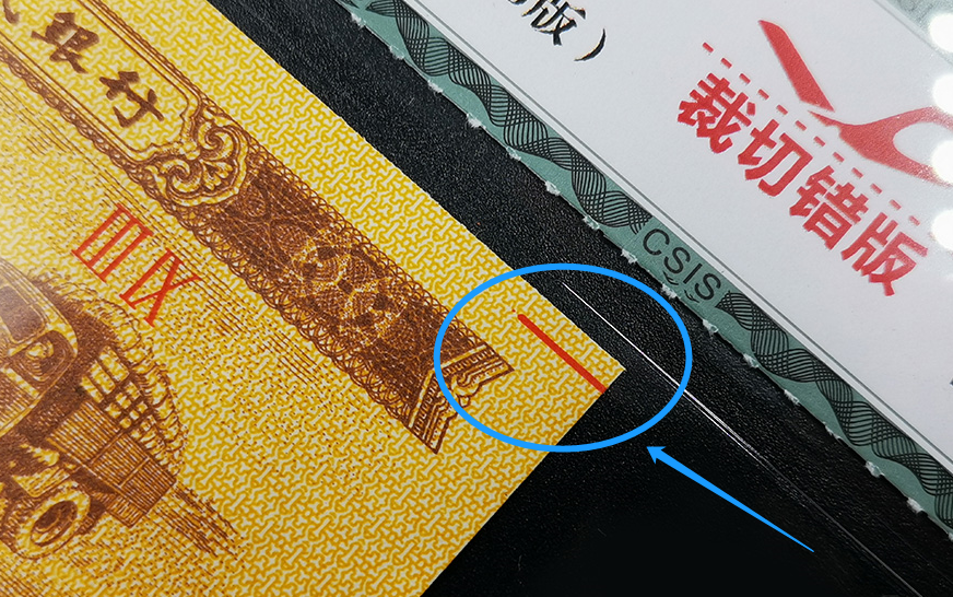 本该在红线处裁边的,由于当时人工作业的错误操作,就将这些带红线的和正常纸币一起打捆了,这个秘密,只到最近在整理时才被发现!