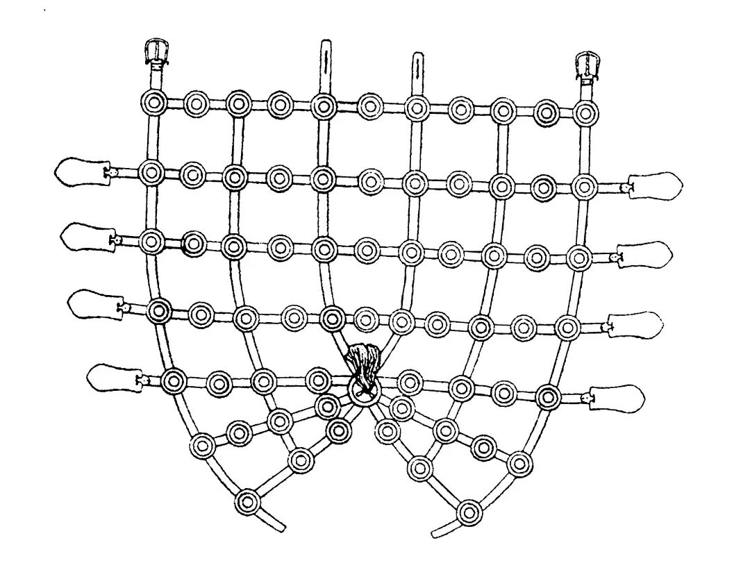 马具之后鞦,表示马珂系带的位置(据安阳孝民屯154号西晋墓出土物复原)。