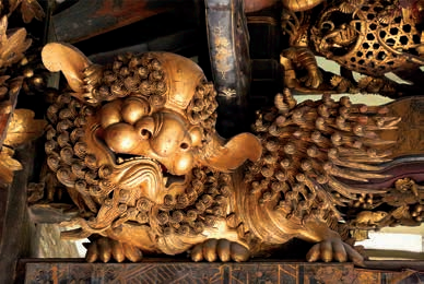 金漆圆雕狮子滚绣球 / 太狮少狮木构件