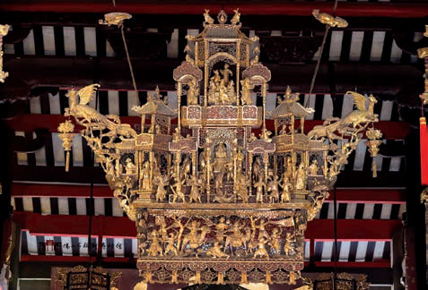 佛山祖庙悬于厅堂的金漆木雕彩门
