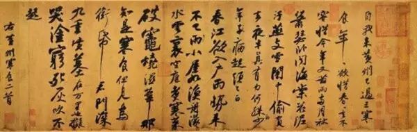 章法的布局美又在于它能符合自然美的法则,妙在各得其所。苏东坡的《黄州寒食诗帖》通篇结构、大小、长短、疏密等变化迷离,在有意无意之中,流露出一种不事雕琢的意趣。精神兴会,奔赴腕底,使整幅作品表现出一种豪放雄浑的气势。反之,过于工整齐平而无变化,杂乱无章而乏气韵,以及一些过于窒塞局促,或过于疏远神散的章法,往往就不能给人以一种美的享受。“意境”是作者通过对自然界和生活中一些现象的观察、思维和体会,运用熟练的笔墨技巧,从而在其作品中流露出他的思想、情感和艺术修养。它不是指某一字形或具体的点画,而是贯穿于全幅的一种精神境界,意境越高,就越能显示出它美的魅力。只有法度而乏意境,只能称为“字匠”。故凡书家,无不以神韵,意境为书道之极峰;而书工笔史,虽竭精神于日夜,但只不过徒事描画,仅取形貌,是不足以言书的,只有功性兼备,才能神采丰实。