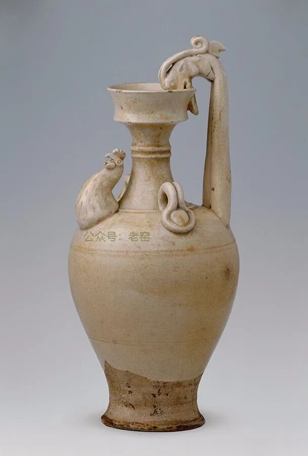 鸡头壶:盘口较南北朝时更高,颈更细长,颈部加饰几道弦纹。腹部更为瘦长,鸡头却趋向写实而且较靠近颈部。龙柄、带系。
