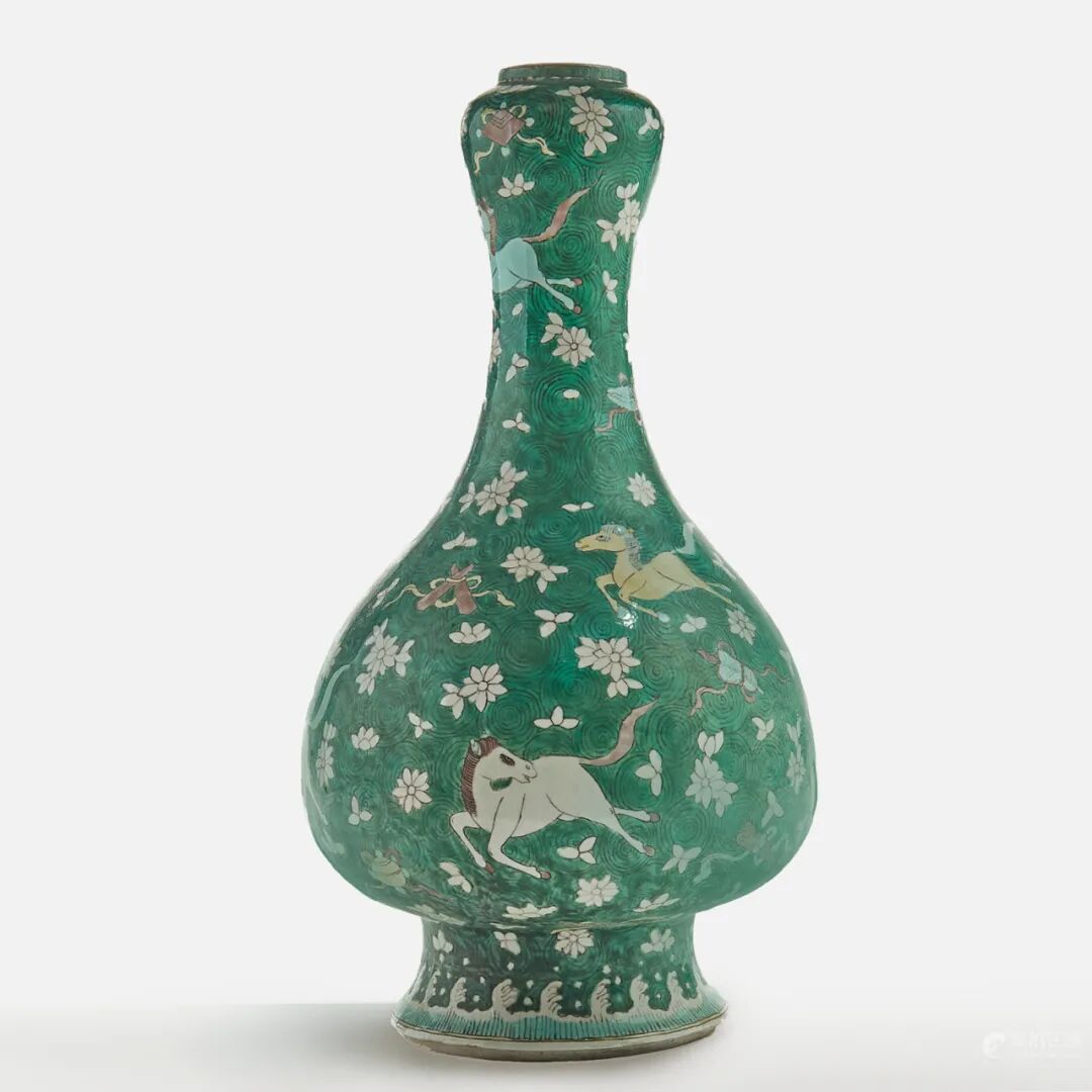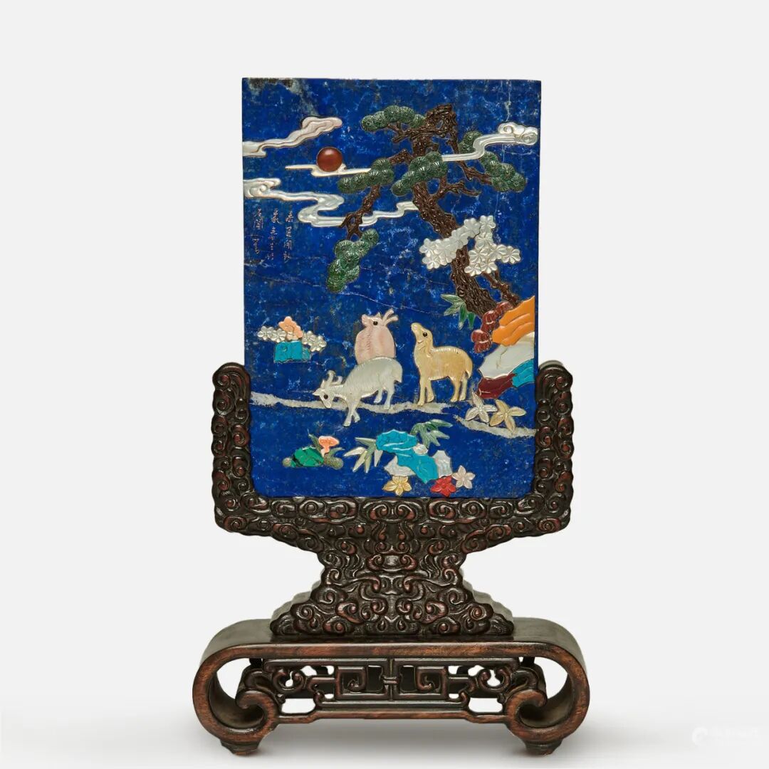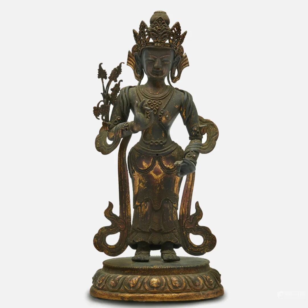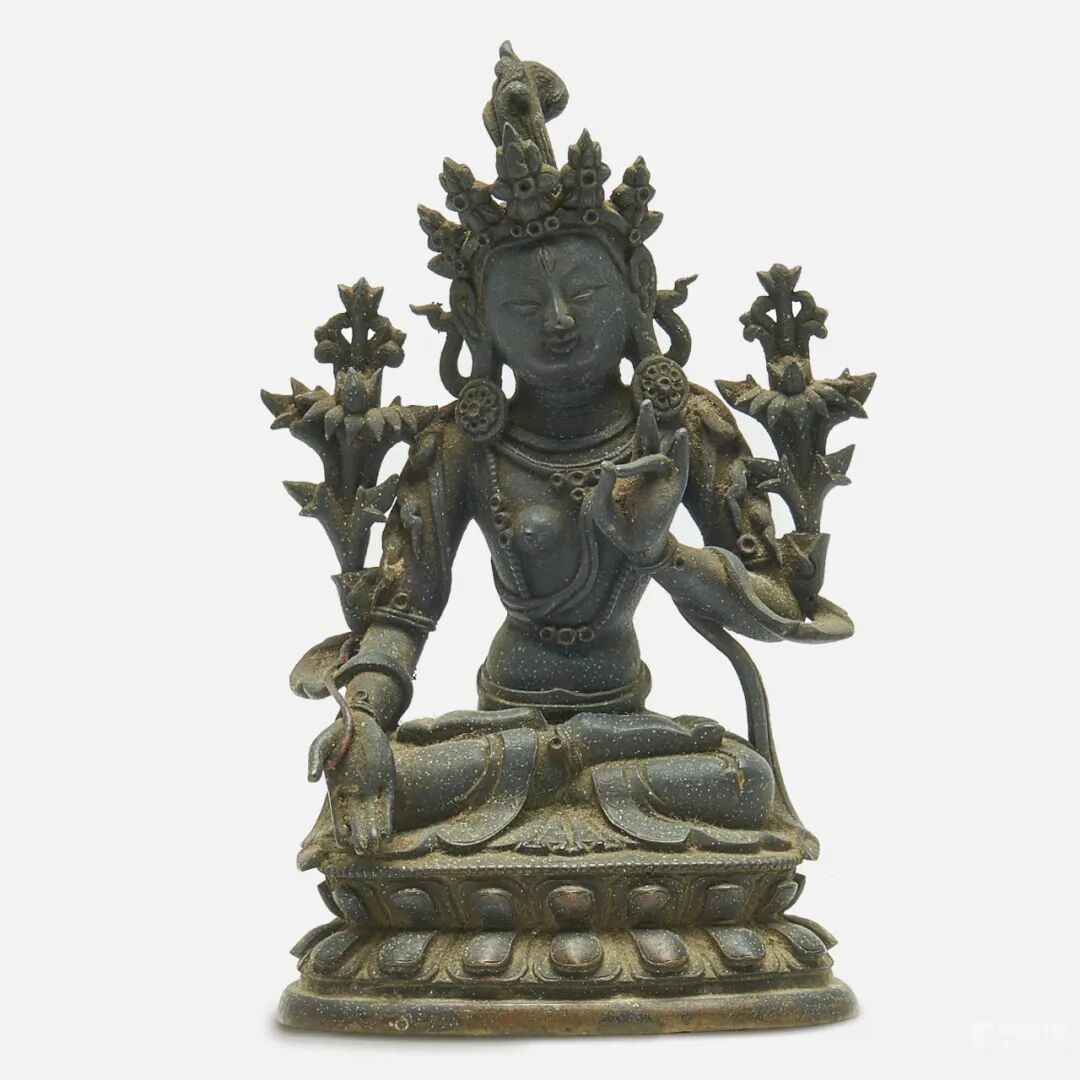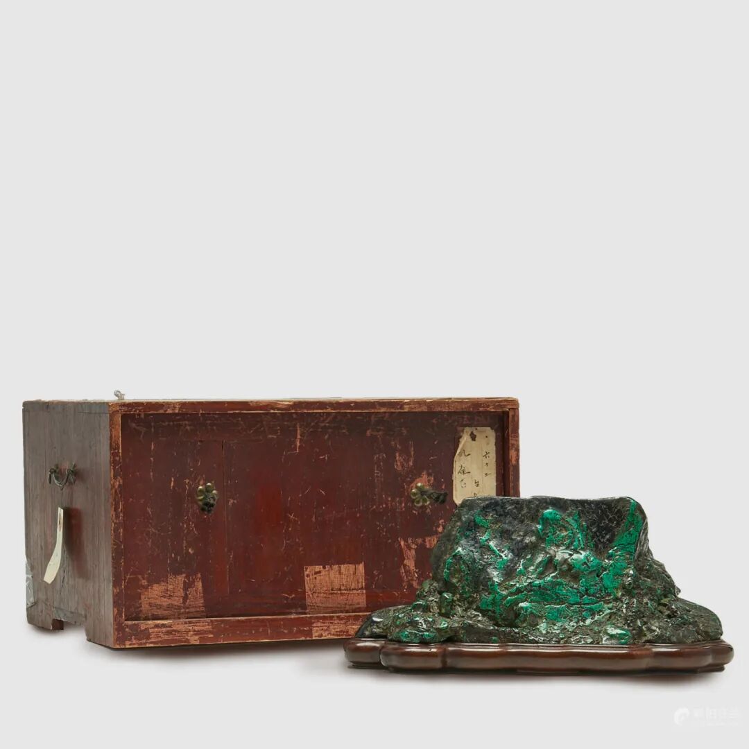 夹纻漆像又称为「脱胎夹纻」,大都是用来塑造雕像,可以说是最早的翻模技术。作为漆塑像的方法,先用泥塑成胎,后用漆把麻布贴在泥胎外面;待漆干后,反复再涂多次;最后把泥胎取空,因此又有「脱空像」之称。此方法塑像不但柔和逼真,而且质地很轻,因此又称「行像」。元代虞集在《道园学古录》中记载:「漫帛土偶而髹之,已而去其土,髹帛俨然成像。昔人尝为之,至正奉(刘秉元)尤极好,抟丸又称脱活,京师人语此。」可见元代称生漆夹纻像为抟丸或脱活。唐天宝二年,扬州大云寺鉴真和尚东渡日本传法,夹纻造像之法由是传入彼邦,鉴真和尚之像,迄今尚存于日本奈良唐招提寺。此像立于莲花座之上,双手结说法印,头戴五叶冠,发髻高耸,余发披肩。额际高广,弯眉与鼻胫相连,目光下敛,相容和煦,现慈悲之态。身体呈三折扭姿站立,结构比例精准。上身袒露,胸前配饰项链璎珞。腰系束带,下身着长裙,自然垂于腿上。单层覆莲座,莲瓣工整挺拔,排列规整,整体造型大方,工艺精湛,保存完好。孔雀石为含铜矿石,依孔雀石大小不同,可制作大山子或案头陈设。孔雀石从古代一直被用作绿色颜料中的矿物颜料,直到约公元前1800年。该颜料具有适度的耐光性,对酸敏感,颜色不同。此件孔雀石山子摆件,质地为孔雀石,形若耸立山岭,表面褶皱曲折,嶙峋峭拔,颜色艳丽,包浆处尽显翠色,光彩夺目,为案头赏玩佳物。
