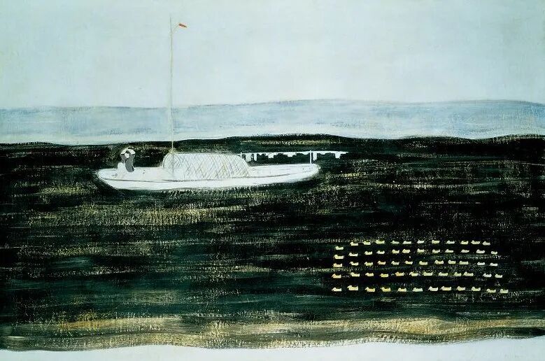《電線上的燕子》不僅在繪畫上體現了常玉對西方現代主義造型簡化的思考,更是精妙的將含蓄飽滿的東方情思寄託於畫面中作為其對自身文化的呼應與回歸。在這張體現藝術家心境的作品中,層層相疊的連綿電線卻不似巴黎的城市景觀,電線桿的挪用很可能來源於少年時期在上海讀書生活的記憶嫁接,構成了一種「精神還鄉」的情感表達。