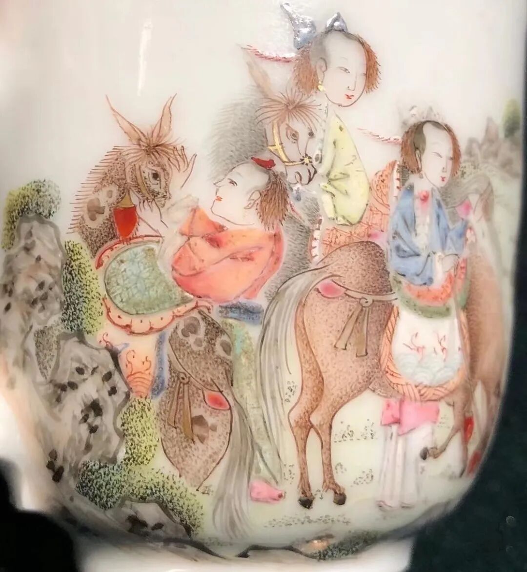 图12 清雍正洋彩昭君出塞图把杯局部