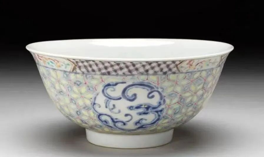 图2清康熙珐琅彩锦地团螭纹碗“大明弘治年制”款