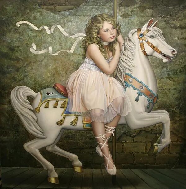 她画面上的人物、动物都十分逼真