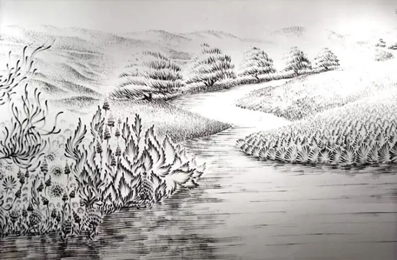 这是一位爱用石墨画画的奶奶