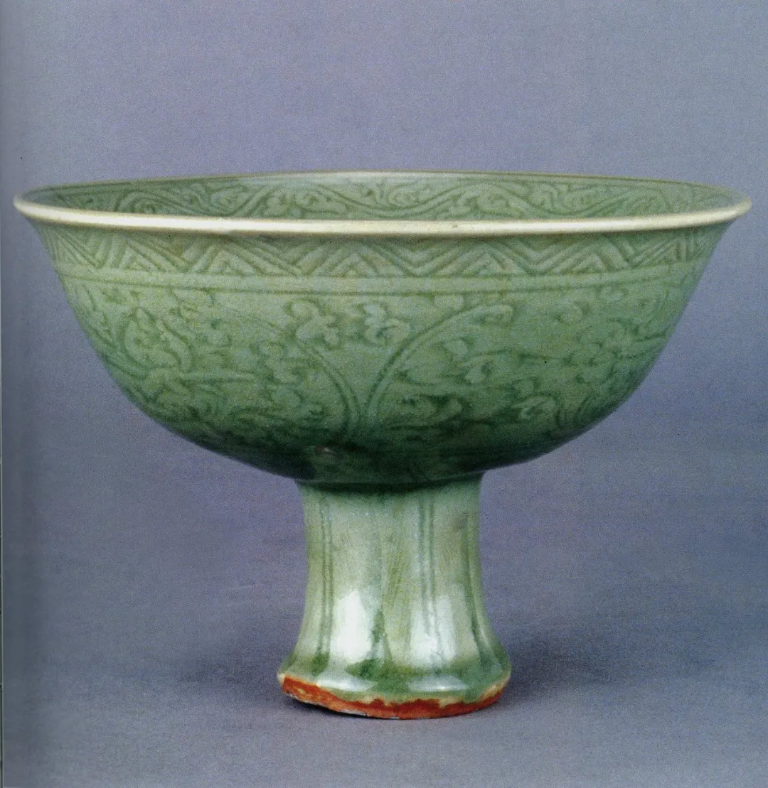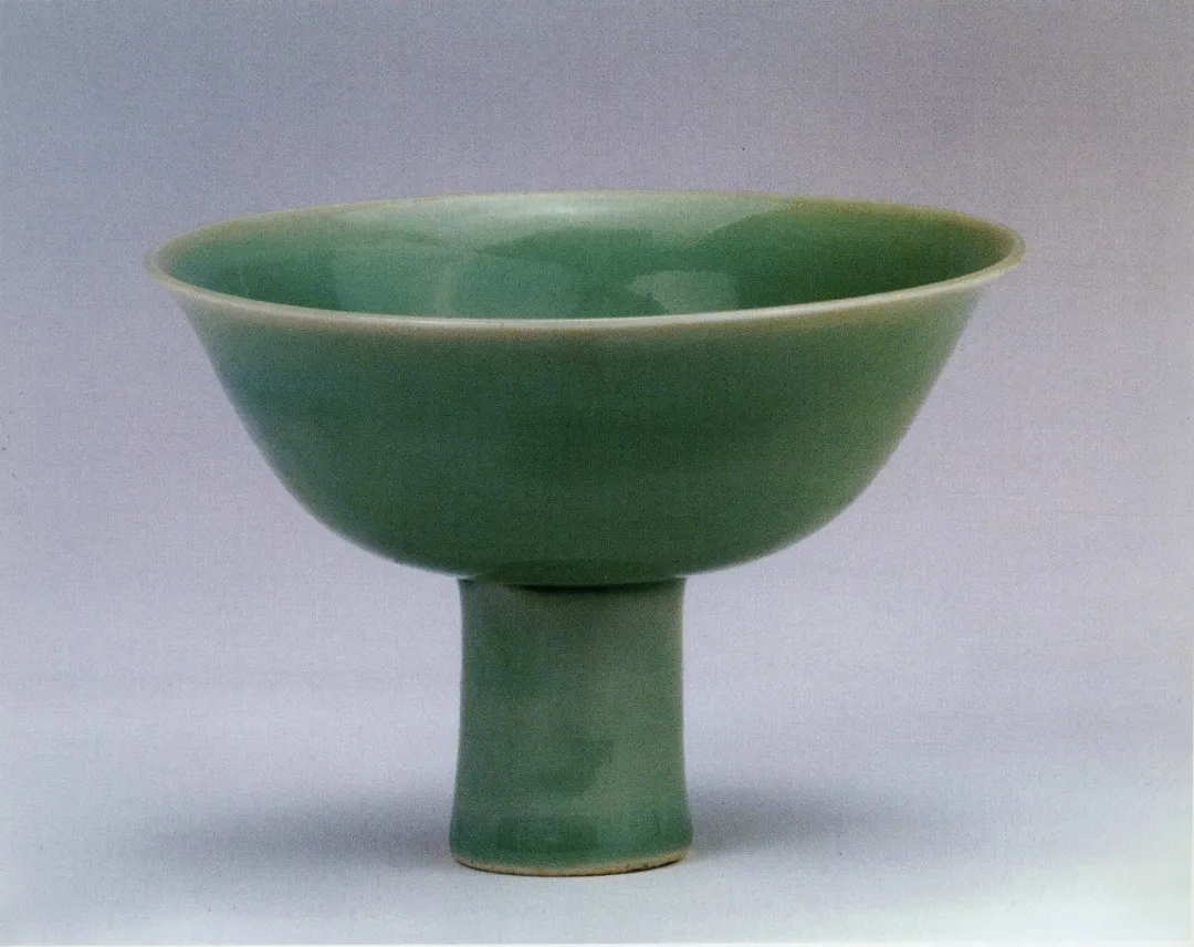 明代早期的白釉因甜美如脂非常著名,白釉高足碗釉色肥润、清透如雪,碗内壁的暗花龙纹线条流畅活泼,“大清乾隆年制”的铭文记录了其遥远的来处。