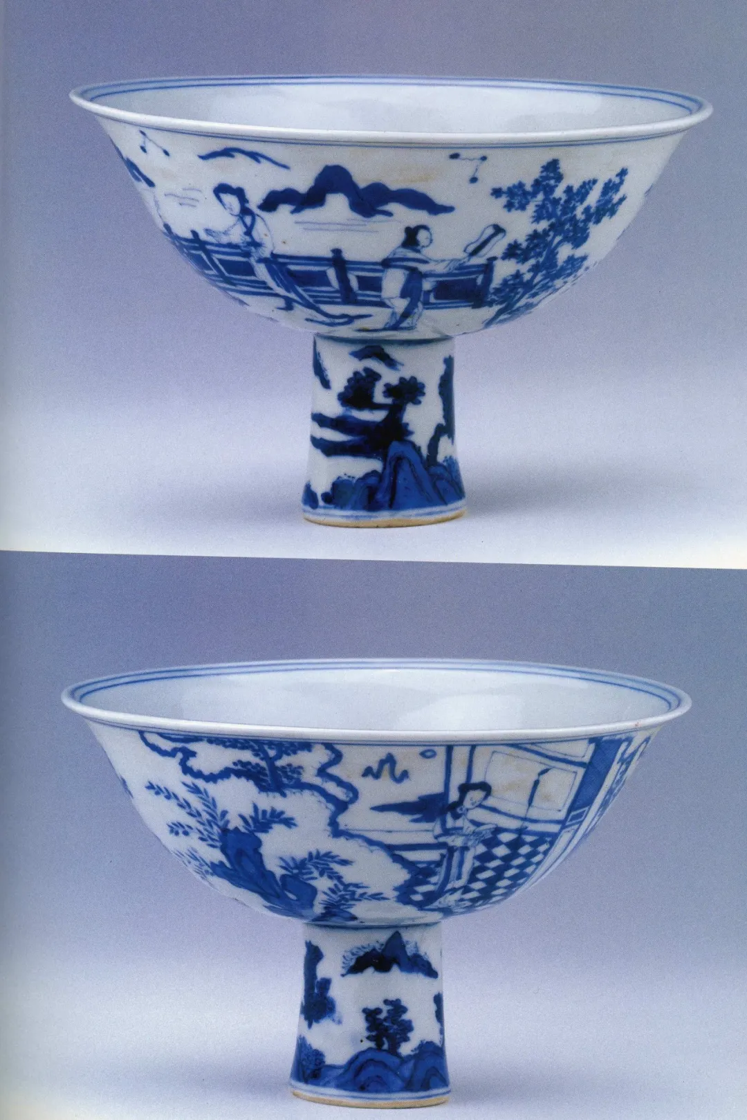 元朝末年,一位蒙古贵族在大草原畋猎,并在畋猎间隙用青花高足碗畅饮美酒。高足碗的设计宜抓握,适合在马上饮酒,深受游牧民族喜爱。同样的碗盏,也出现在了西藏,被当做了向神供奉的器具,装盛酥油、牛奶或青稞酒。
