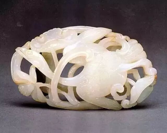 翠玉白菜,长18.7厘米,宽9.1厘米,厚5.0厘米,与真实白菜相似度几乎为百分之百。此件翠玉白菜原是永和宫的陈设器,永和宫为清末瑾妃所居之宫殿,据说翠玉白菜即为其随嫁的嫁妆。白菜寓意清白,象征新嫁娘的纯洁,昆虫则象征多产,祈愿新妇能子孙众多。自然色泽、人为形制、象征意念,三者搭配和谐,遂成就出一件不可多得的珍品。