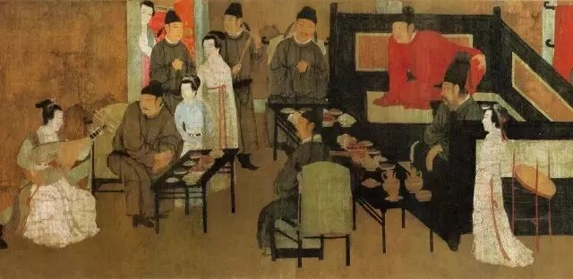 《韩熙载夜宴图》,绢本,宽28.7厘米,长335.5厘米,是五代南唐画家顾闳中的作品,是中国画史上的名作。它以连环长卷的方式描摹了南唐巨宦韩熙载家开宴行乐的场景。