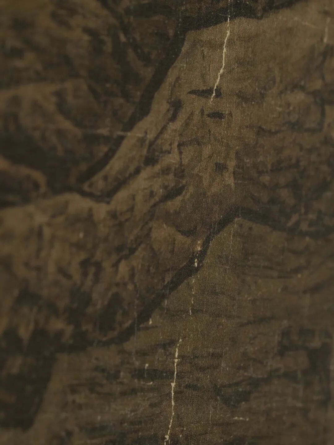 《万壑松风图》构图像溪山行旅图,满幅大山巍巍压顶,气势撼人。但下笔更有力量,运转方折,均是铁骨铮铮。