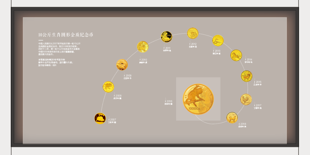 此枚10公斤丙申(猴)年金币,身份极为特殊,为十分难得的“1号”币。