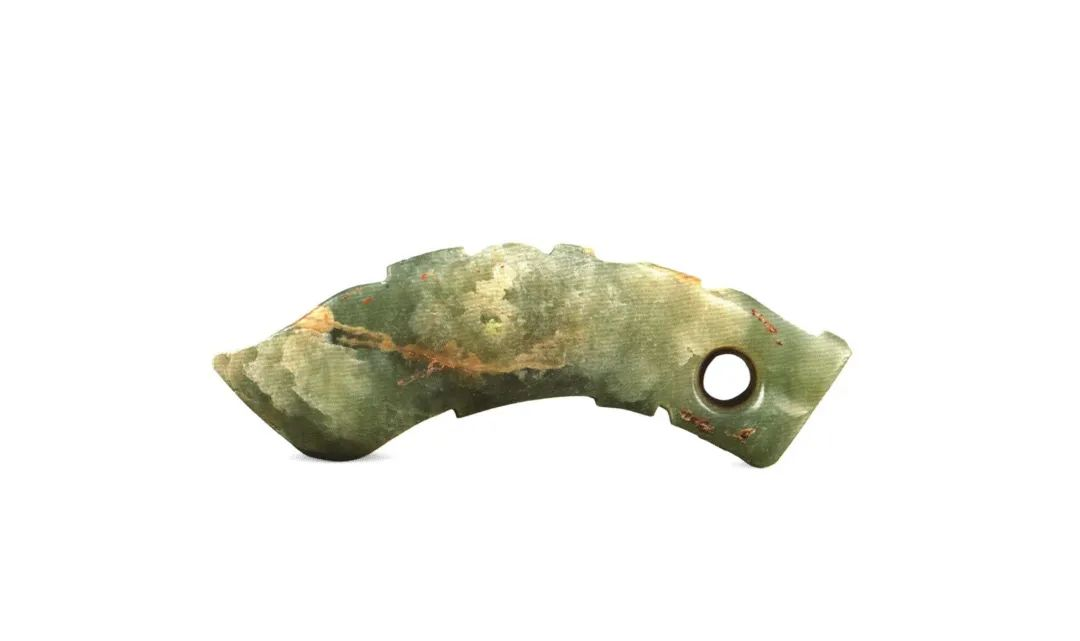 通长4.6cm 通宽1cm,扁平璜形,头部一穿。