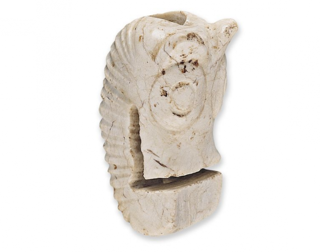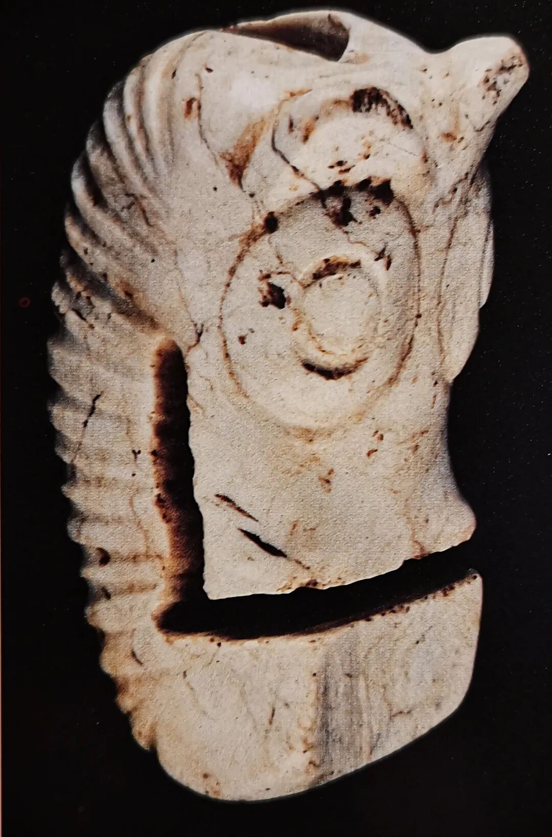 细看此玉龙,突然想起上世纪90年代也有一件圆雕龙首形玉器出现于港台,然而因其他各种原因未能被台北故宫博物院收藏,现今已不知流落何方,细细对比,本次拍卖圆雕玉龙即为此件无疑。从当时遗留影像来看其高约4cm,白玉,在龙首的背面琢成节状纹,这一点在台北故宫博物院《故宫文物月刊》174期邓淑萍撰《良渚神徽与玉耘田器》P14也有提及。