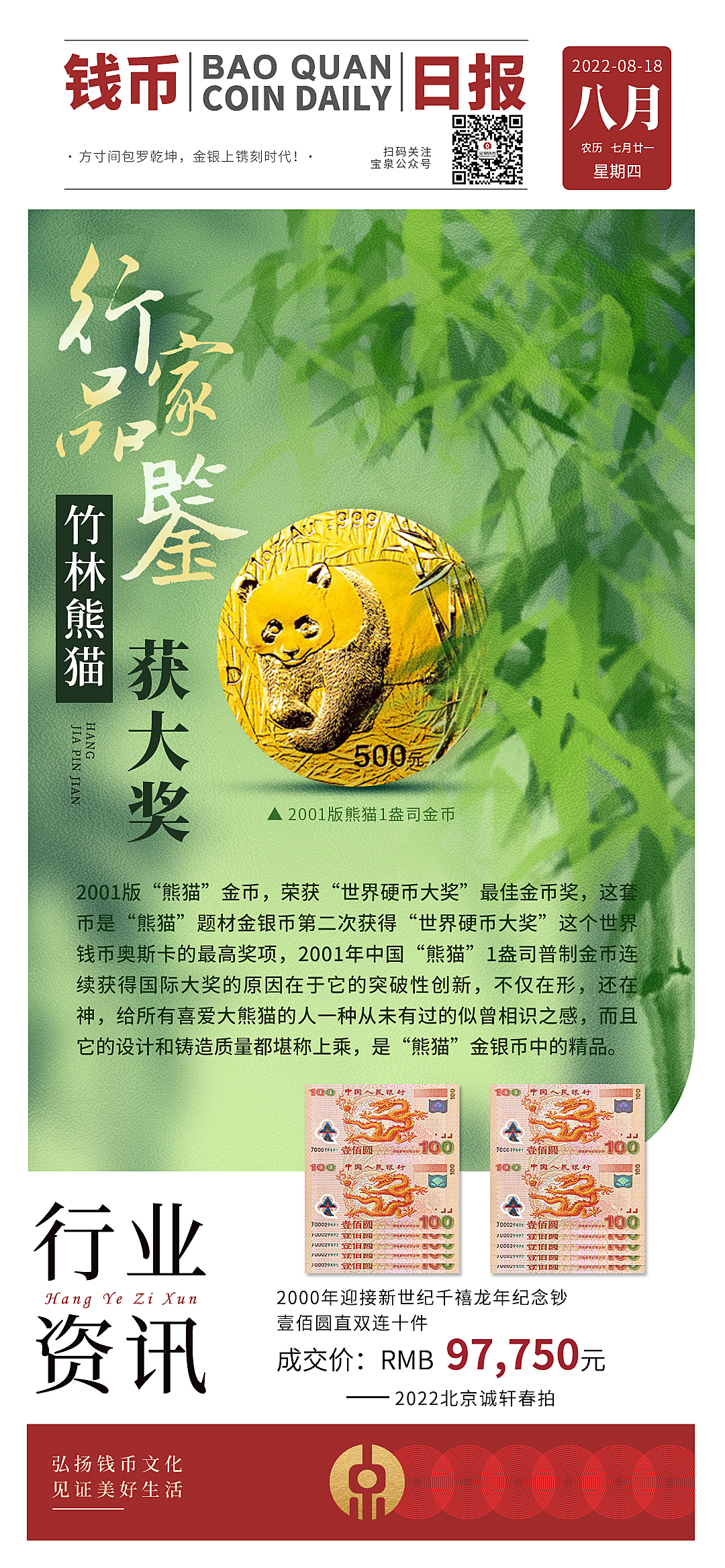 【钱币日报】竹林熊猫获大奖