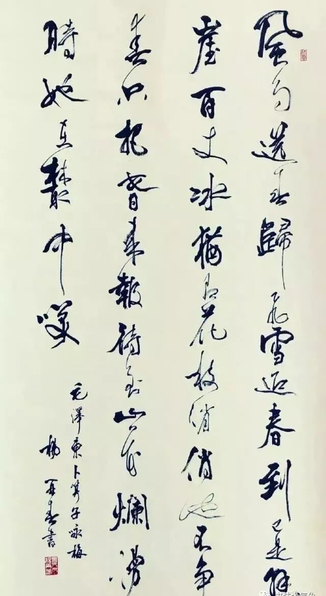 进入到20世纪,人们忽然发现很难再见到杨再春先生的身影了。这位曾引领一代人、影响一代人的书法家,沉寂了、没落了。为什么会出现这种情况?首先,社会的发展让大家接受知识的途径多了。以往只能在电视上看书法讲座,现在各种各样的书法类书籍、网上的书法教学视频层出不穷,可供选择的多了。其次,人们的眼界以及审美水平更多元、更丰富,更注重追求古典、自然,于是再回头来看杨再春的字,却还停留在80年代,笔画做作、线条浮夸、映带拖沓怪异,被网友批为入门水平,甚至是“老干体”,不禁令人唏嘘。杨再春的书法,这么多年以来一直没有什么大的改变,而这个社会变了,这个时代的书法环境变了。可以说,杨再春先生的落寞,在时代发展中很无奈,也很必然。![]()