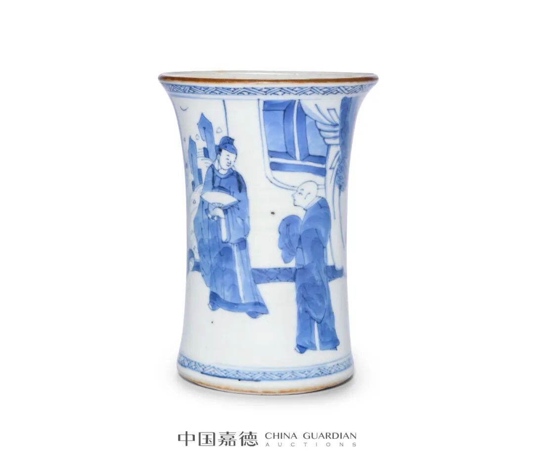 清康熙青花西厢记之慧明寄书人物故事图笔筒