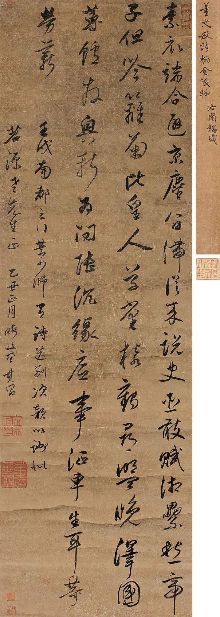 题签:董文敏诗翰金笺轴。络园鉴藏。