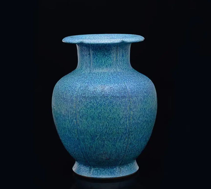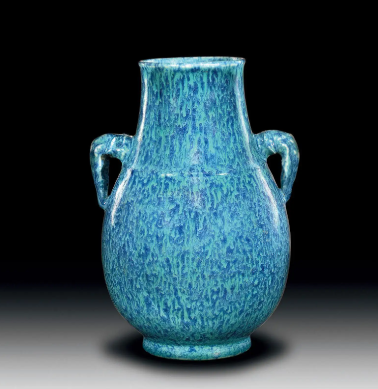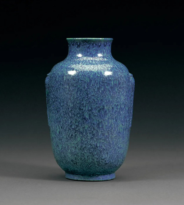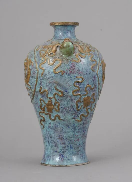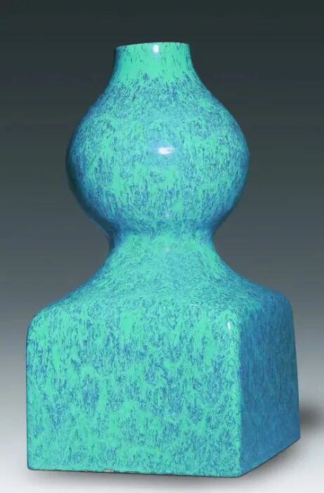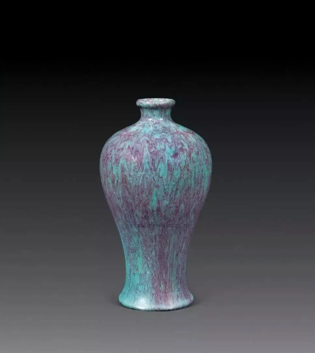 同治、光绪以后,炉钧釉釉色明显退化,釉层稀薄,釉色中变化平淡,仅有白、紫色小斑点,且淡绿色地也显晦涩,缺少前朝那种变化万千、自然明快之感。