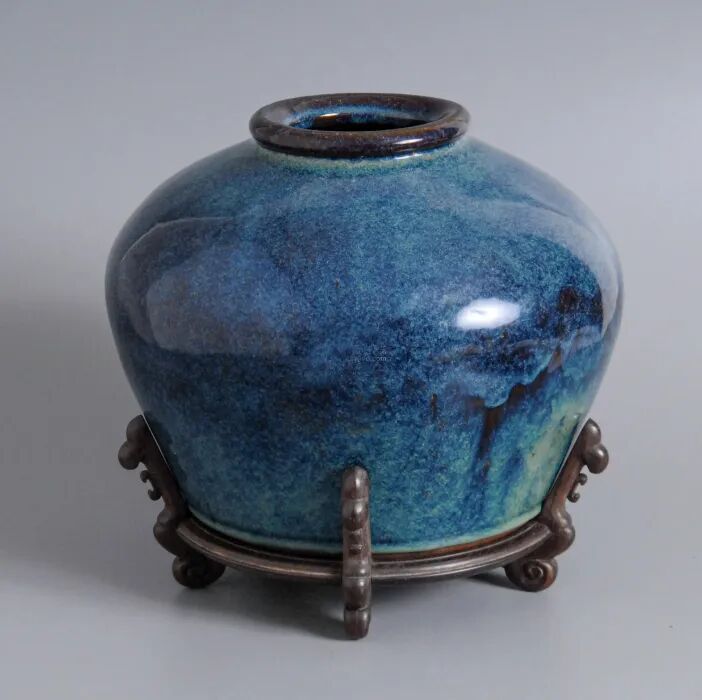 大件器瓶、罐、缸等器物里外及底部均施炉钧釉,这是一个很主要的特征。