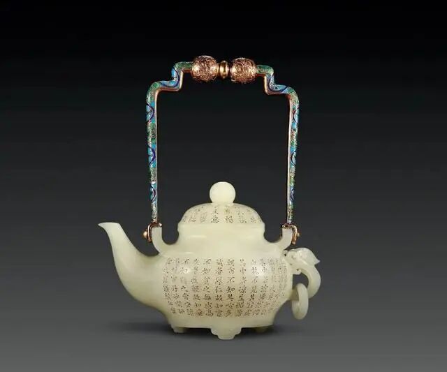 清乾隆 和田玉诗文提梁壶