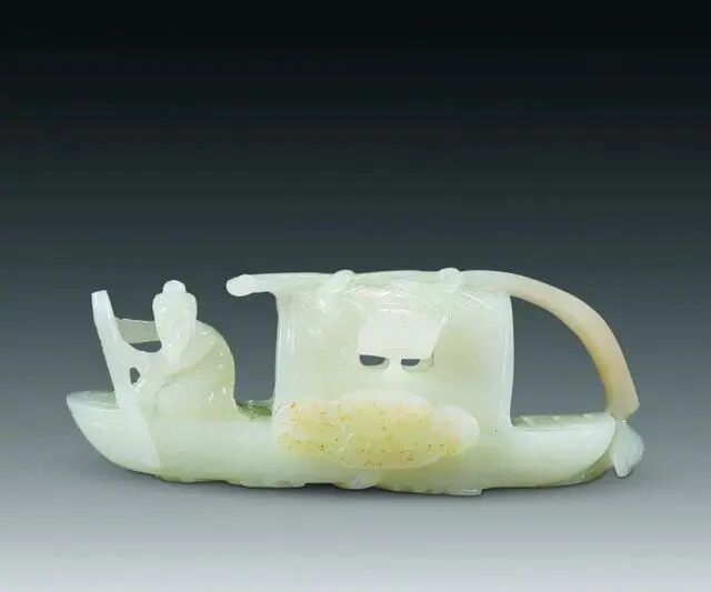 清 和田白玉船摆件