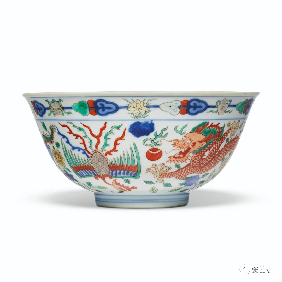 说明:此例雍正五彩龙凤纹盘绘饰栩栩如生,实属精美。各地知名博物馆均藏有近似例,如伦敦维多利亚与艾尔伯特博物馆藏一例(E. H. Lane 女士以 Ada Lane女士名义入藏,藏品号C.45-1928),徐氏艺术馆亦藏一例,载于《徐氏艺术馆:陶瓷IV清代》,香港,1995年,图版126。一例曾于香港苏富比2020年7月10日《马钱特 – 清代御瓷五十选粹》专拍中售出,拍品号3114。另一例于香港邦瀚斯2017年11月28日售出,拍品号20。![]()
