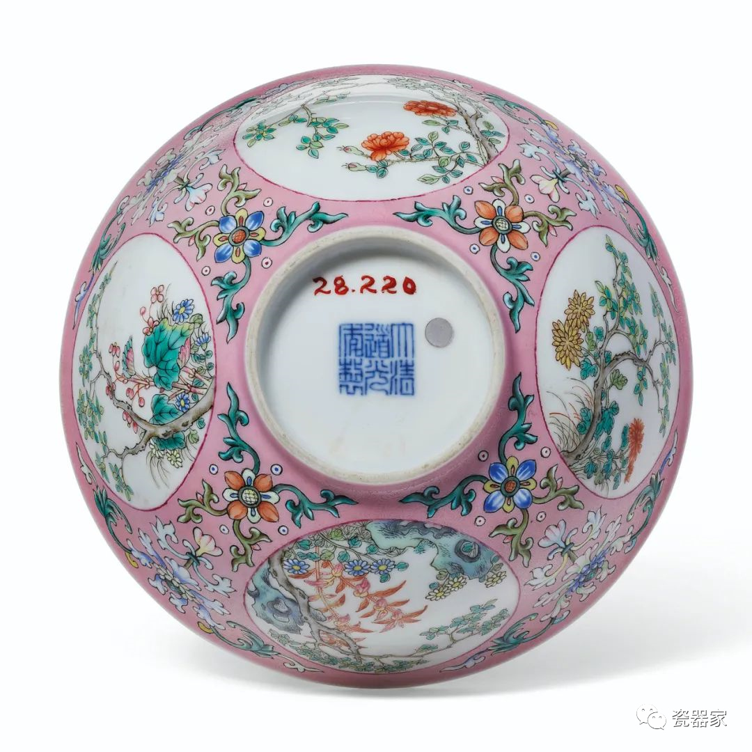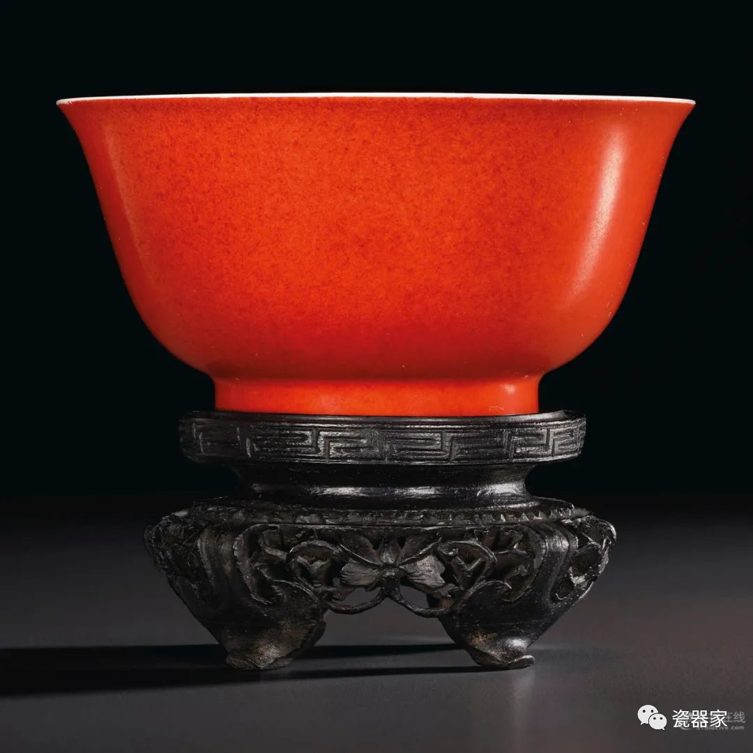 Lot 948 清十八世纪 珊瑚红地粉彩花卉纹小碗